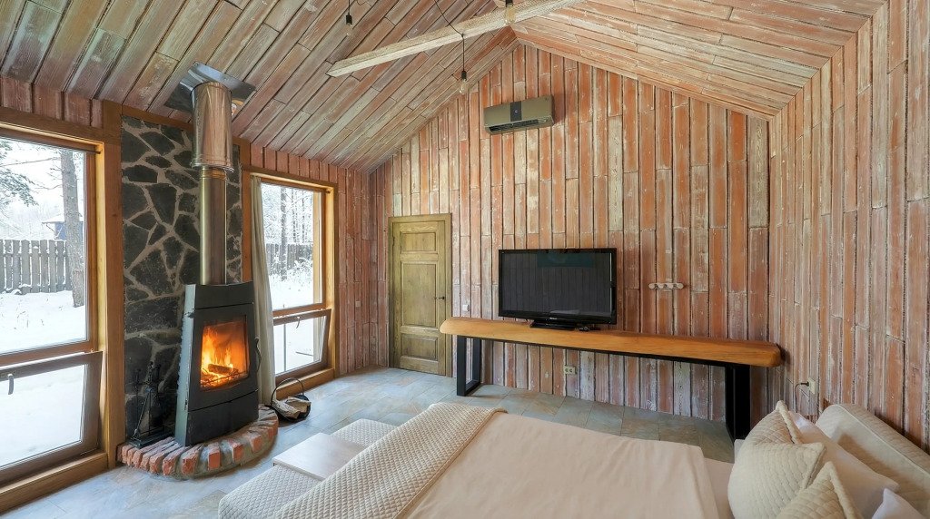 Домик 17 (A-Frame с кондиционером без купели) 55m2, из натурального дерева, двухэтажный включает в себя: