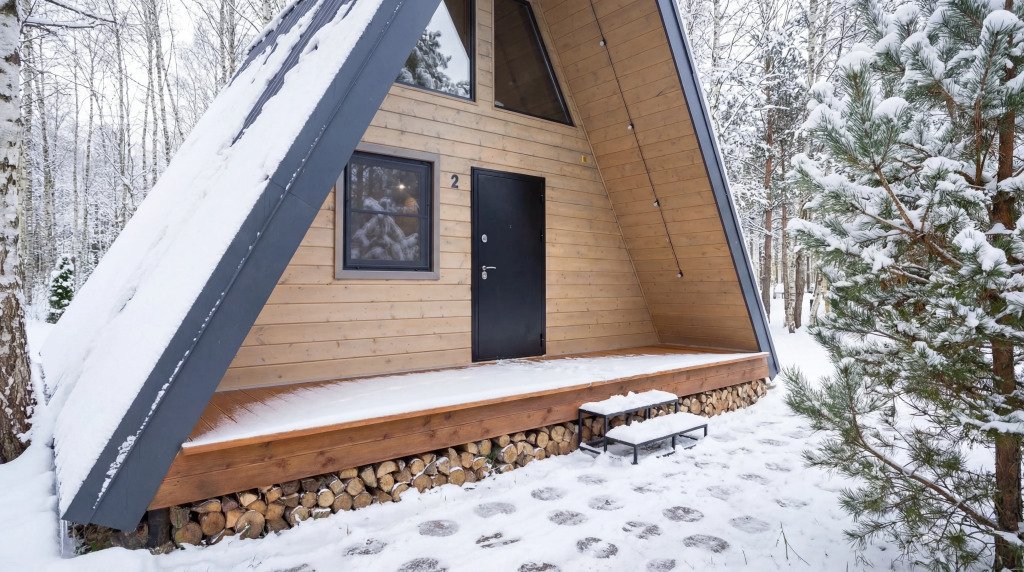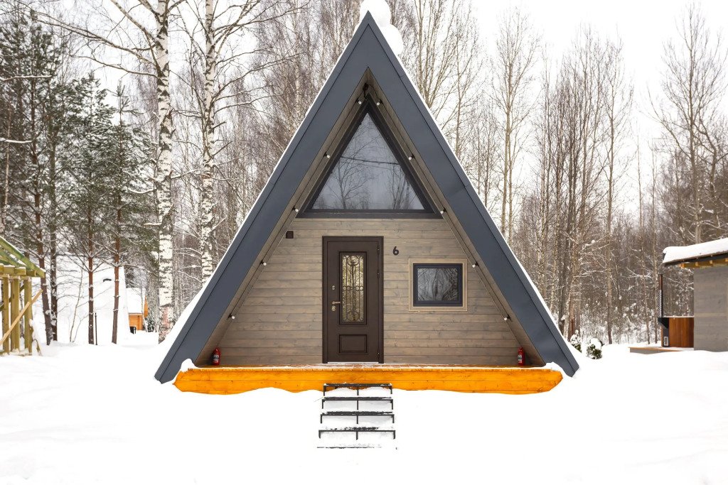 Домик 18 (A-Frame без купели) 55m2, из натурального дерева, двухэтажный.