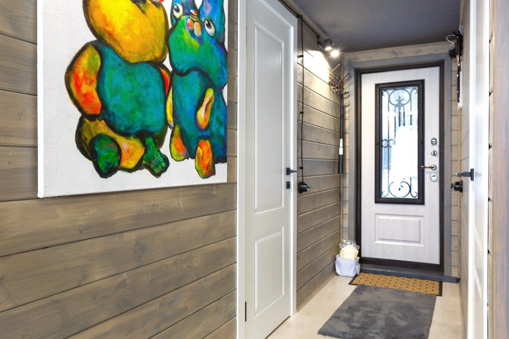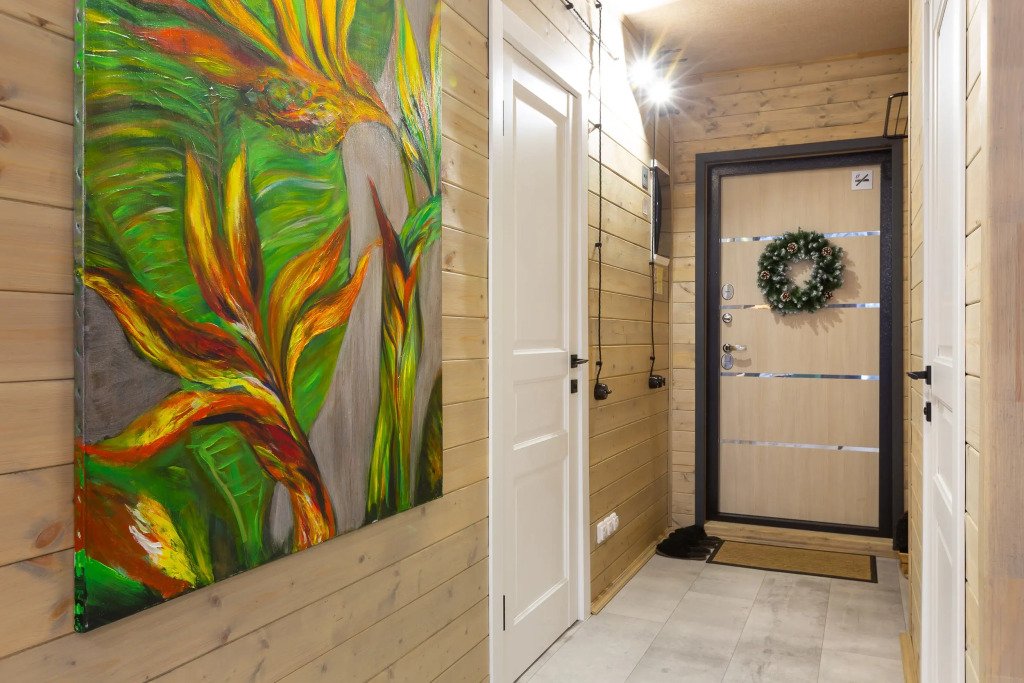 — современный дизайн в стиле скандинавского минимализма, отделка из дерева;