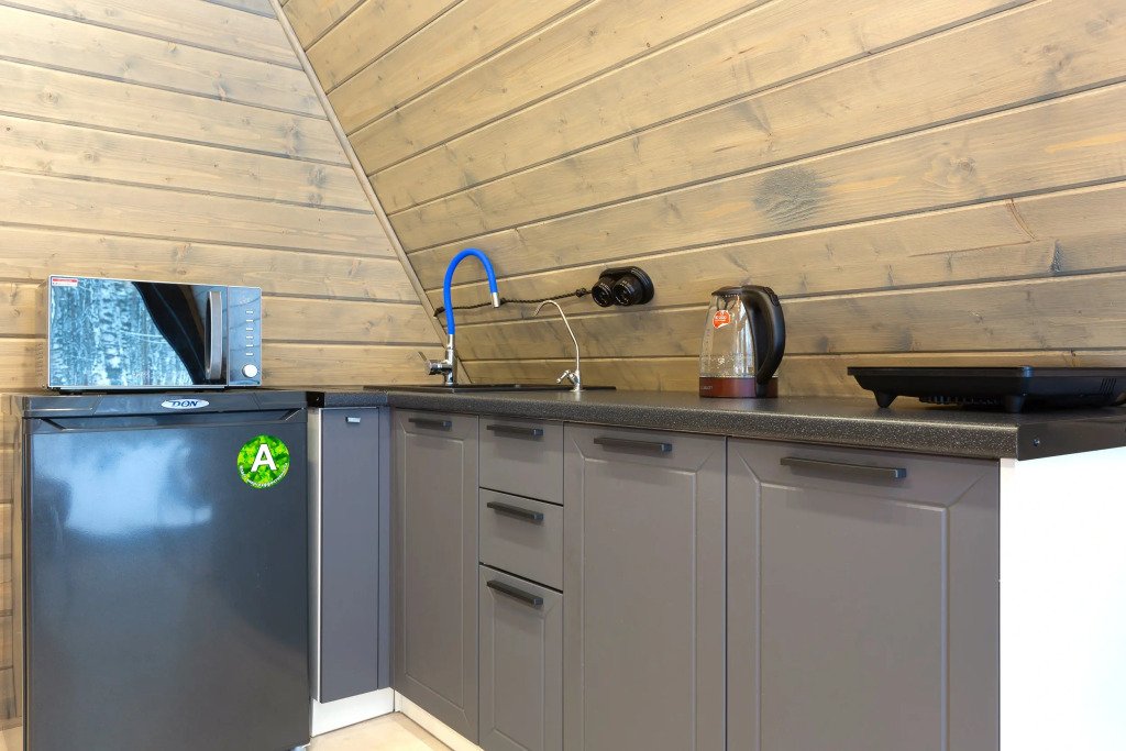 Домик 18 (A-Frame без купели) 55m2, из натурального дерева, двухэтажный включает в себя: