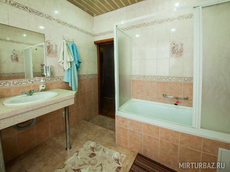 В гостевом доме расположено четыре спальни, три ванных комнаты, а также три двухспальных места, с возможностью организации еще четырех дополнительных мест.