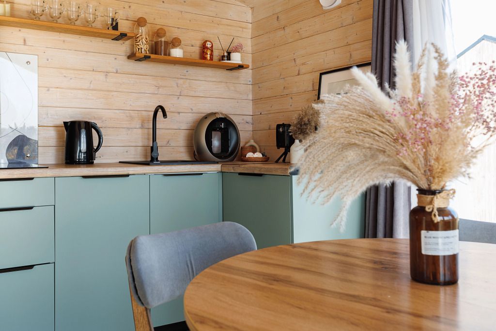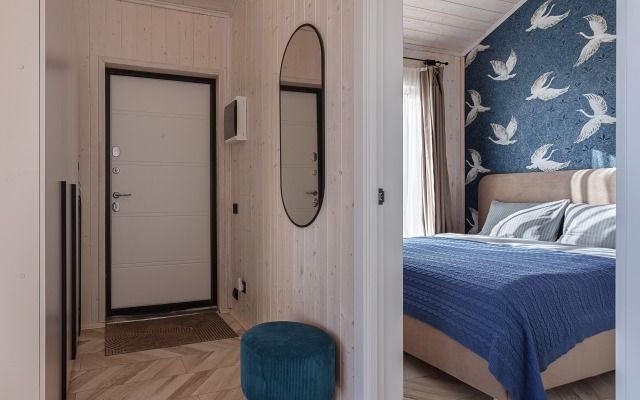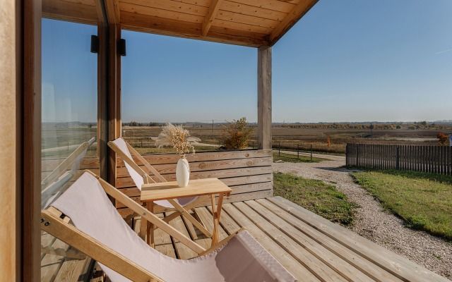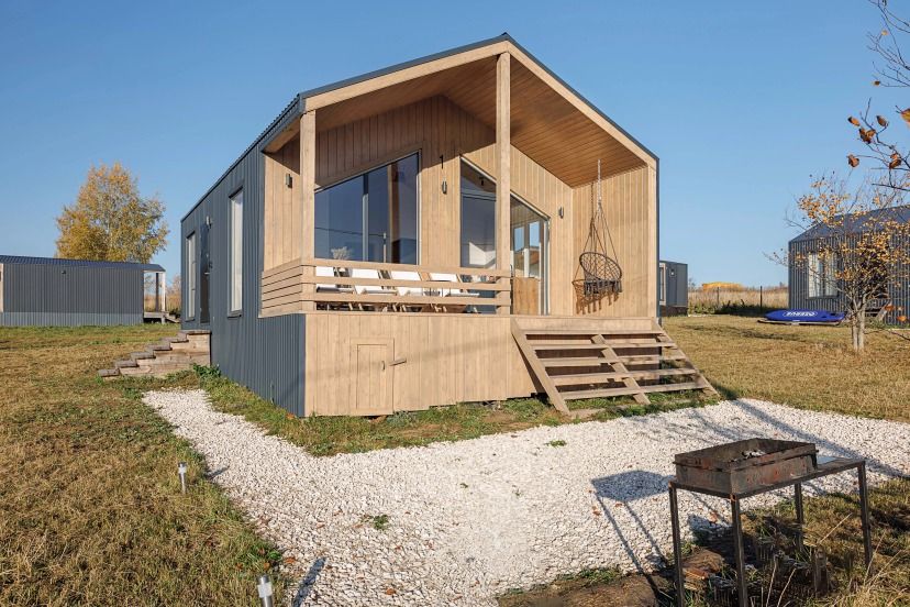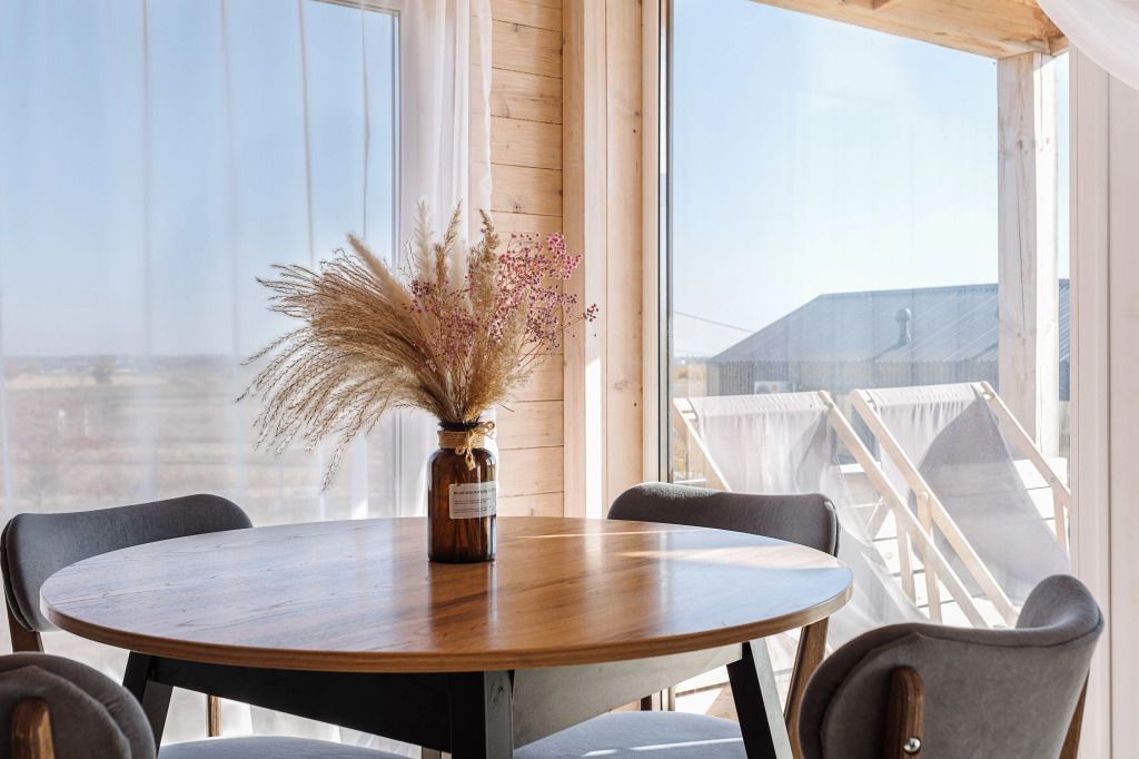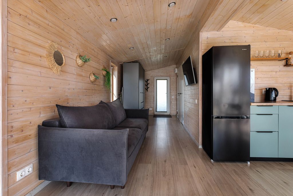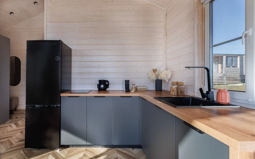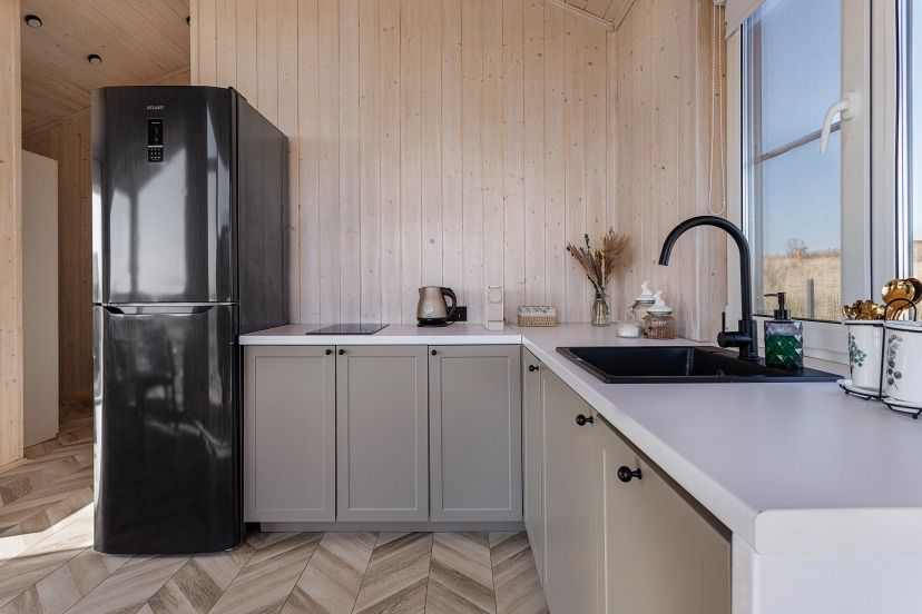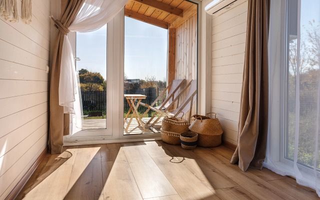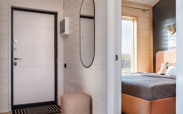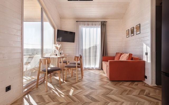 Из панорамных окон открывается прекрасный вид на окружающую природу, создавая ощущение единения с живописными пейзажами. В доме оборудована кухня, где можно самостоятельно готовить любимые блюда, а также есть возможность воспользоваться мангалом, что делает отдых ещё более приятным.