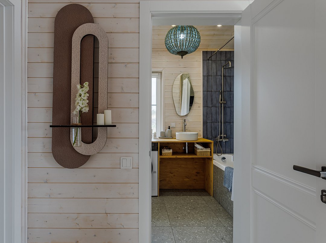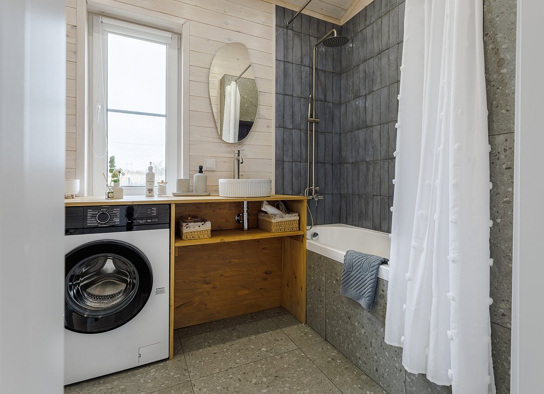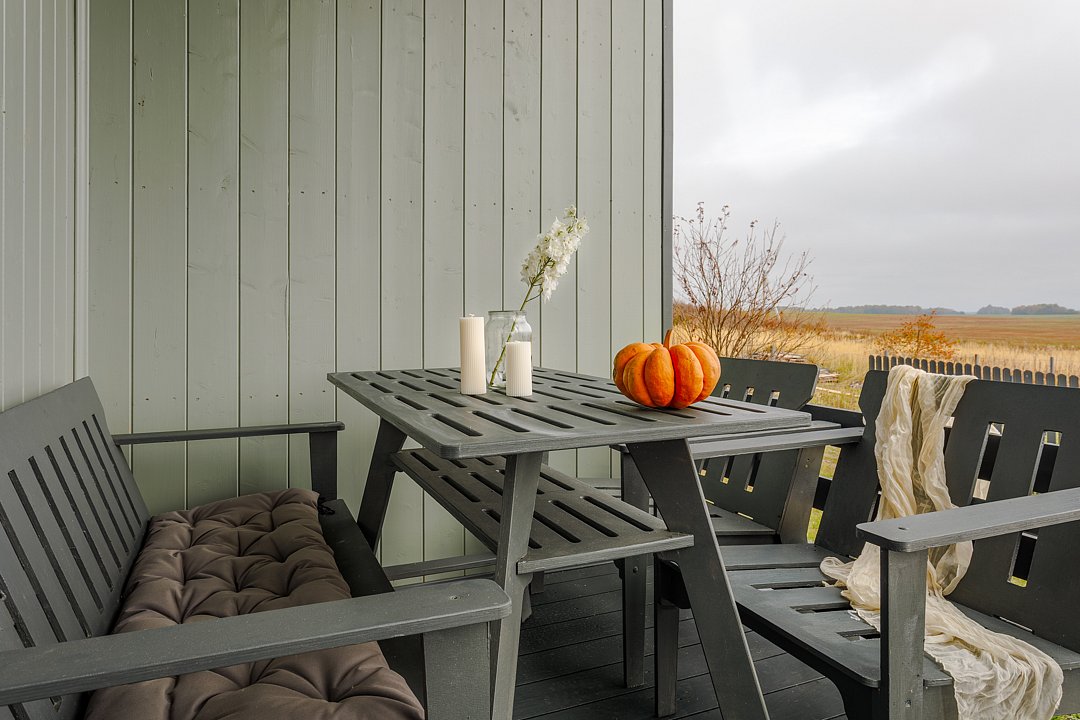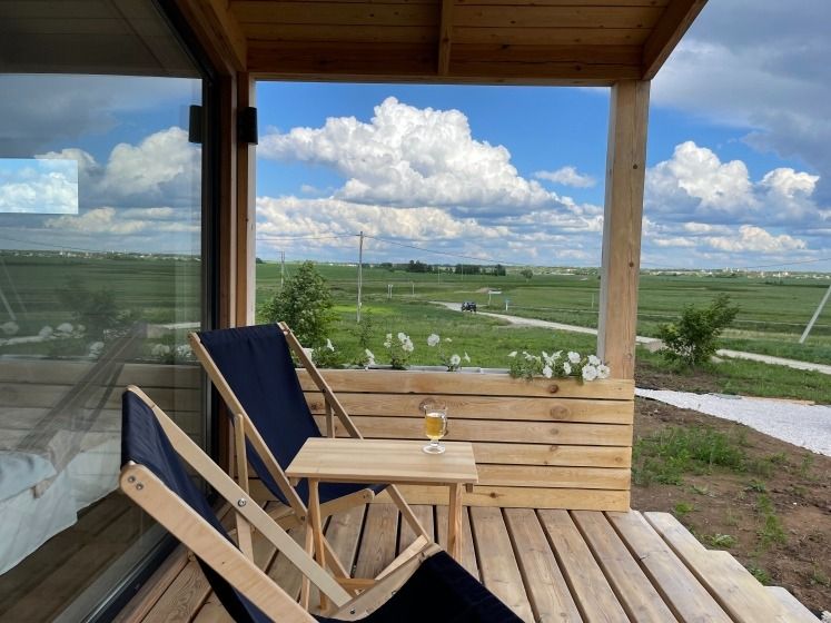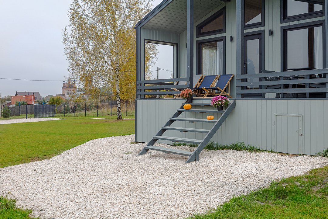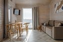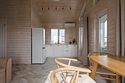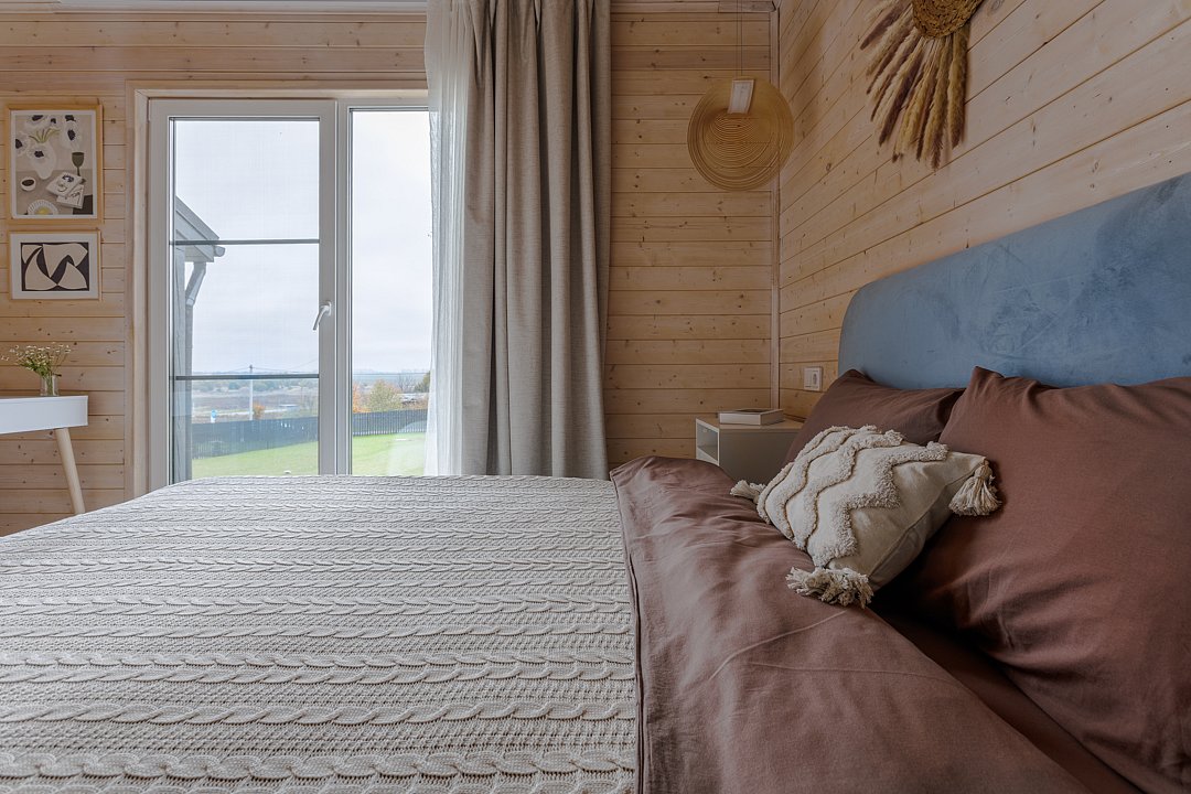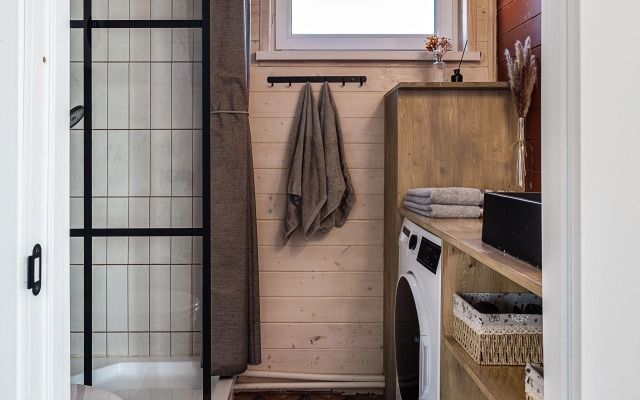 Из панорамных окон открывается прекрасный вид на окружающую природу, создавая ощущение единения с живописными пейзажами. В доме оборудована кухня, где можно самостоятельно готовить любимые блюда, а также есть возможность воспользоваться мангалом, что делает отдых ещё более приятным.