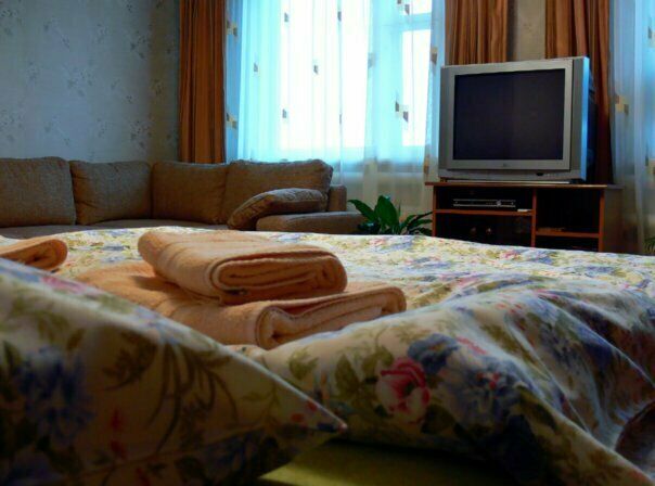В каждой комнате большая кровать, телевизор, шкафы для одежды, мягкая мебель.
