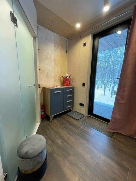 - Смоляная парная с мягким паром, вентиляцией и панорамным окном на лес, печь Harvia "заряжена" 120 кг камней (яшма, жадеит и кварц).
