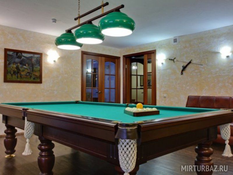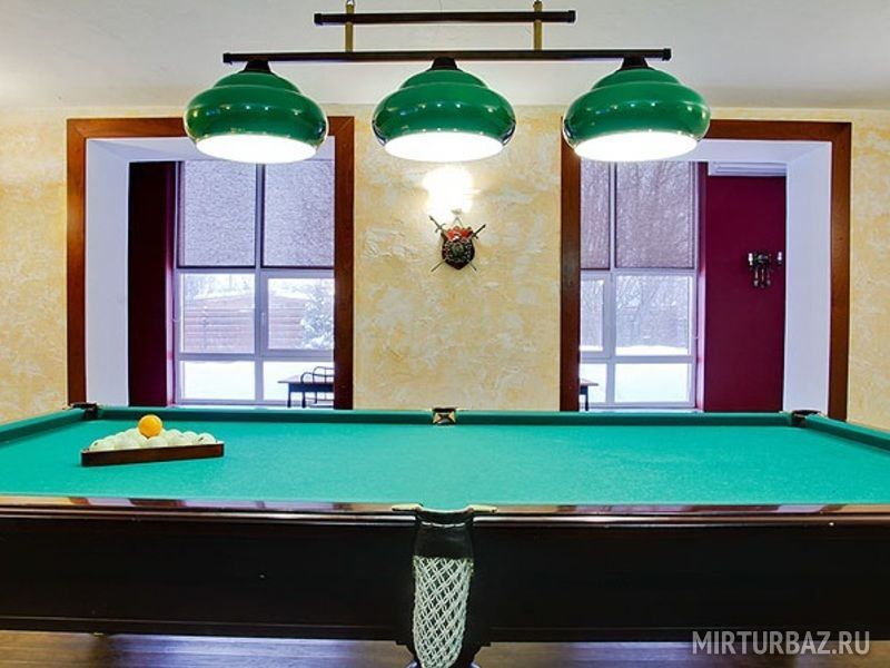 Отдельного внимания заслуживает бильярдная комната. Мало кто задумывается об этом, но за пару часов, проведенных за бильярдом, игрок прогулочным шагом проходит вокруг стола несколько километров. В ходе игры он тренирует глазомер, точность и координацию движений. Игра на бильярде — это ещё один активный отдых, спорт, которым можно заняться, если за окном ненастная погода.