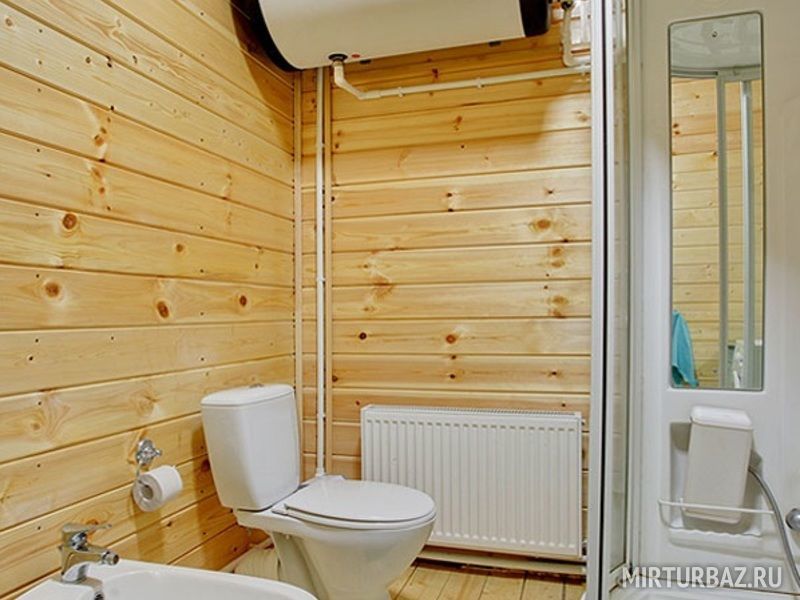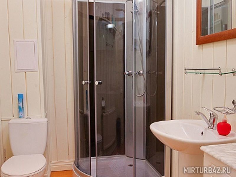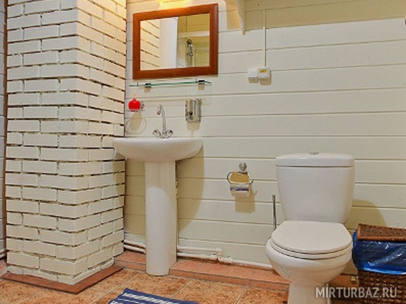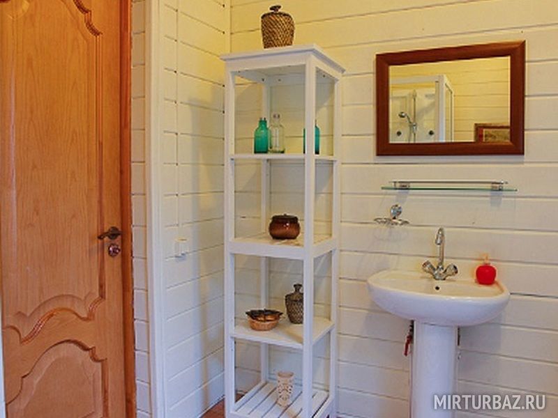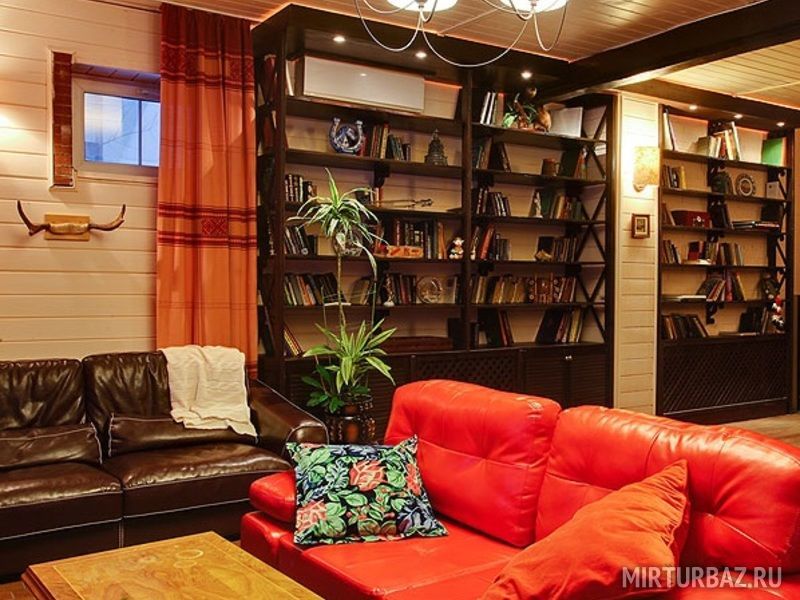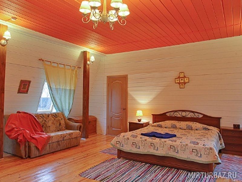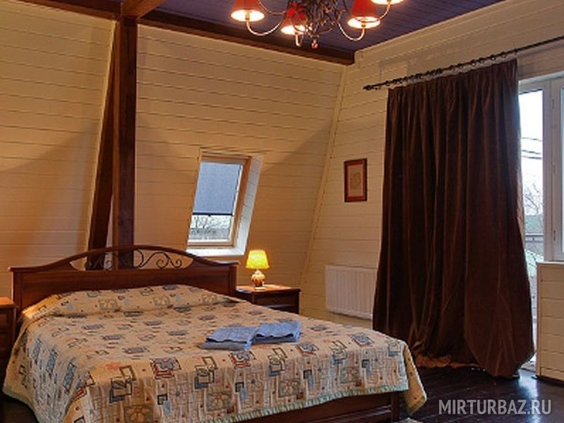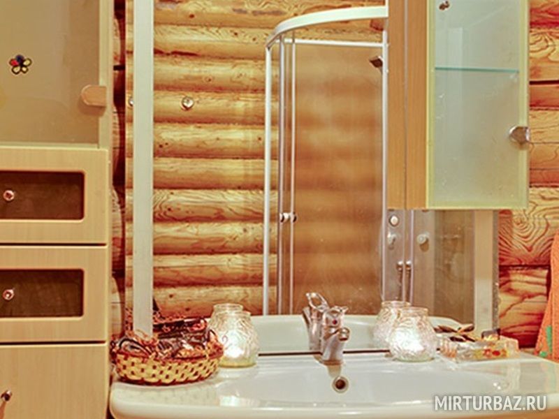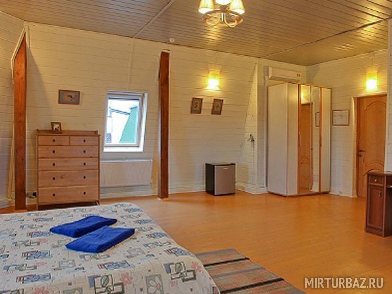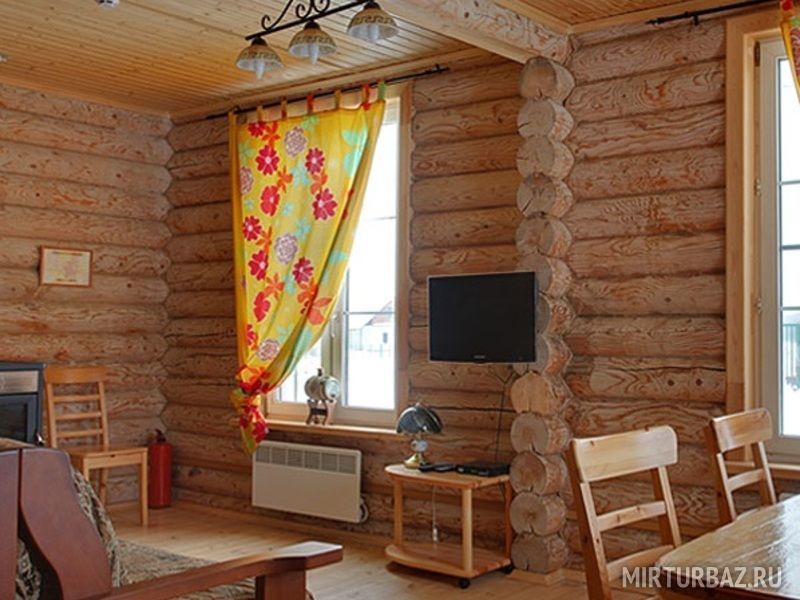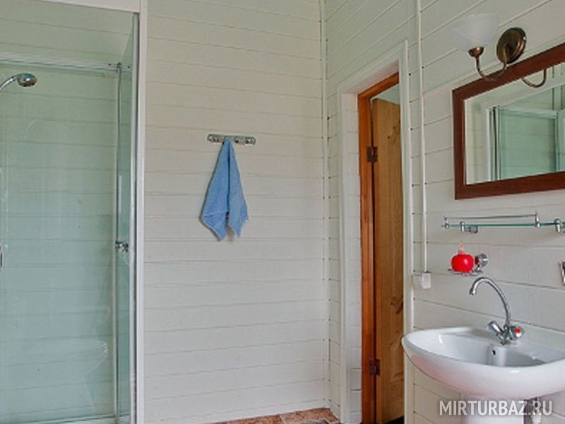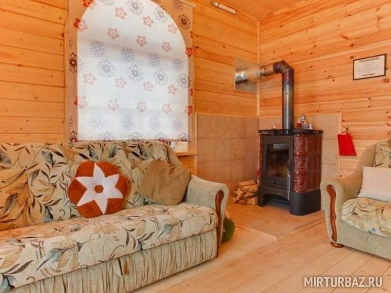 В коттедже также есть оборудованная современной техникой кухня, 2 санузла и просторная гостиная для совместного отдыха. Общая площадь дома, предназначенного для 6 человек, составляет 110 кв. метров.