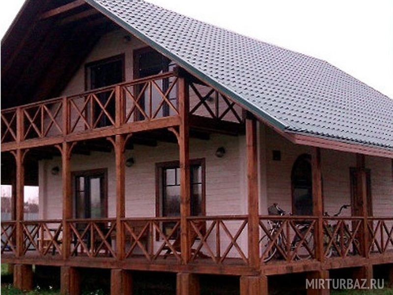 Коттедж «Шале» рассчитан на 8 человек. Имеет 4 удобные спальни, 2 санузла, оборудованную кухню, вместительную открытую веранду и большой балкон на 2 этаже. Общая площадь дома, возведенного из бруса — 126 кв. метров.