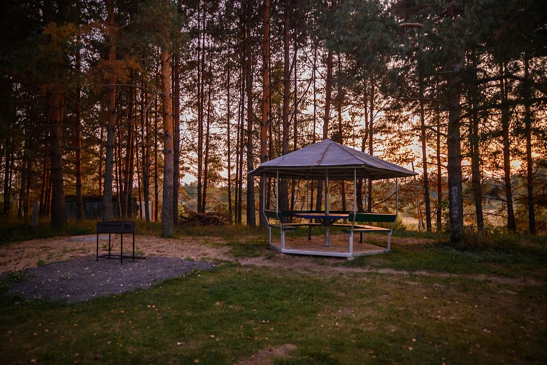 На базе отдыха «Порзамка» гостей встречает круглогодичная уютная беседка, вмещающая до пятнадцати человек. Оснащенная кухней, санузлом и зоной для мангала, она создает идеальные условия для комфортного отдыха в любое время года.