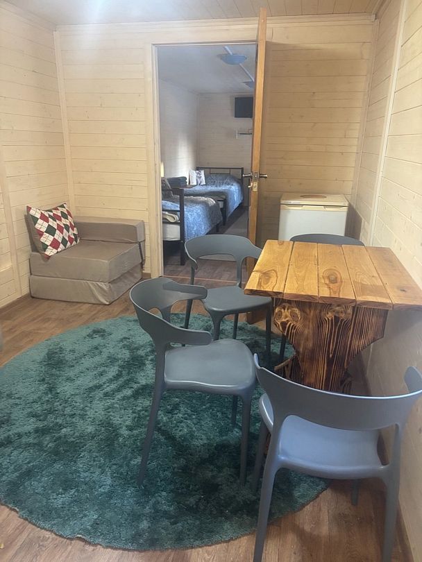 Рядом с каждым домиком уютно обустроена беседка с мангалом, создающая идеальные условия для наслаждения свежим воздухом и природой. Здесь гости могут приготовить изысканные блюда на огне, вдыхая аромат леса, и провести время в кругу близких, погружаясь в атмосферу безмятежности и комфорта.