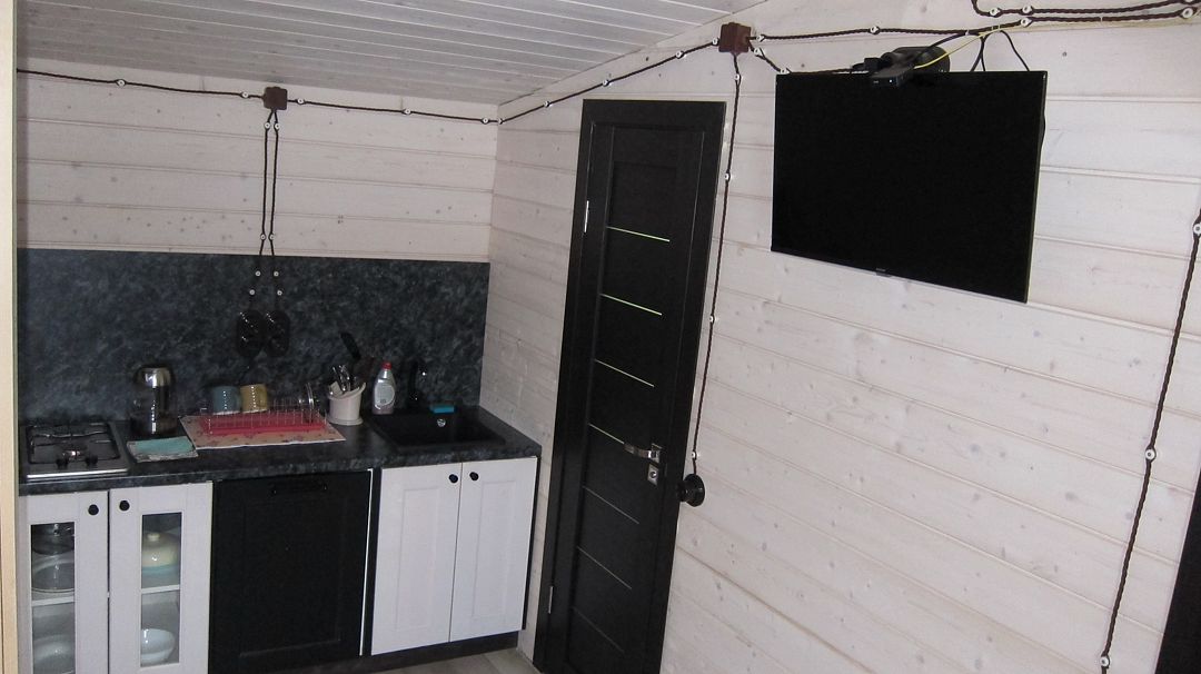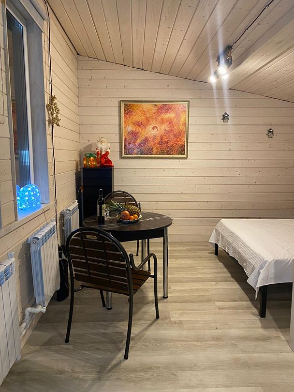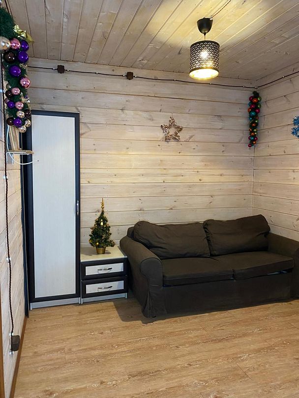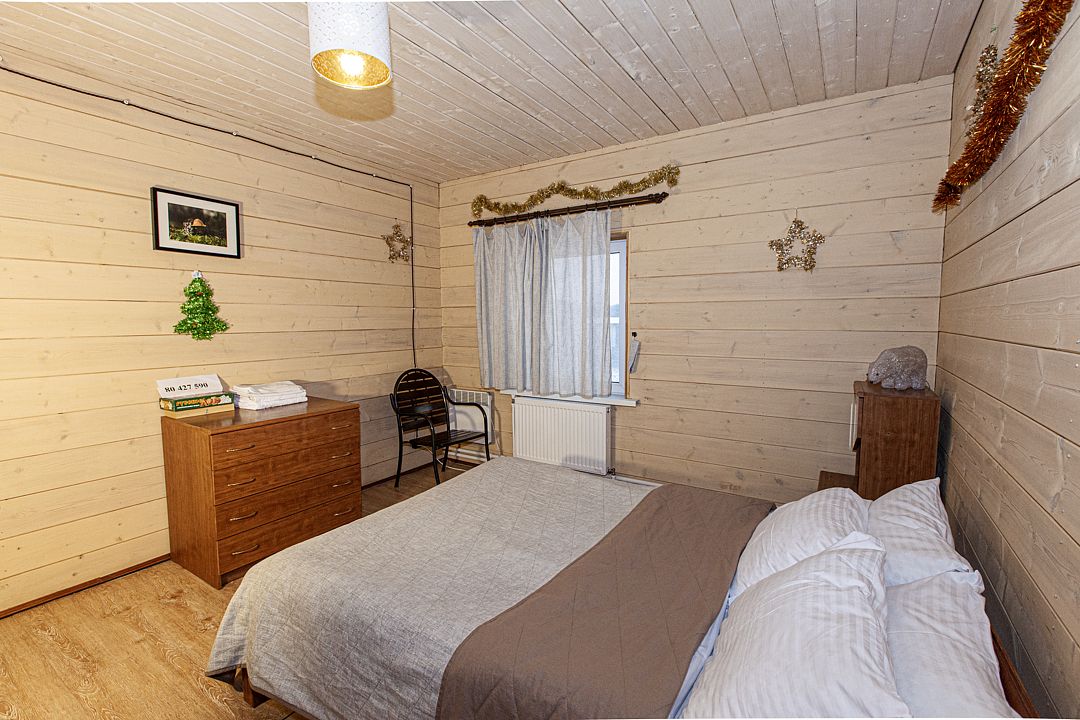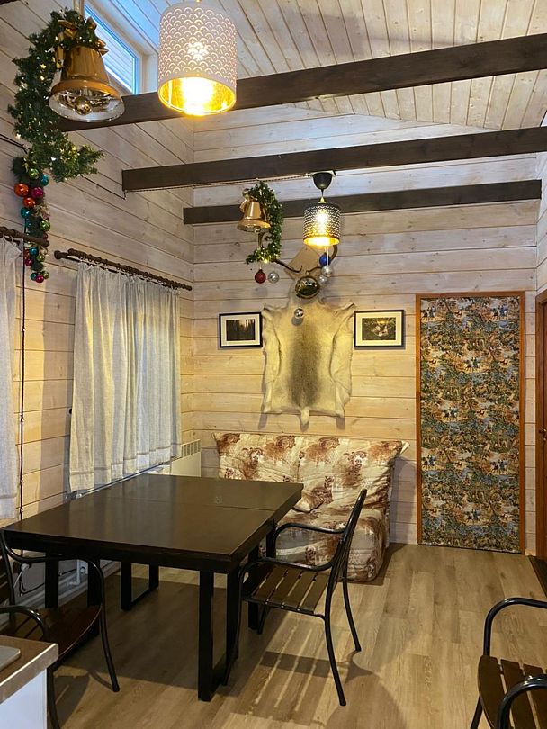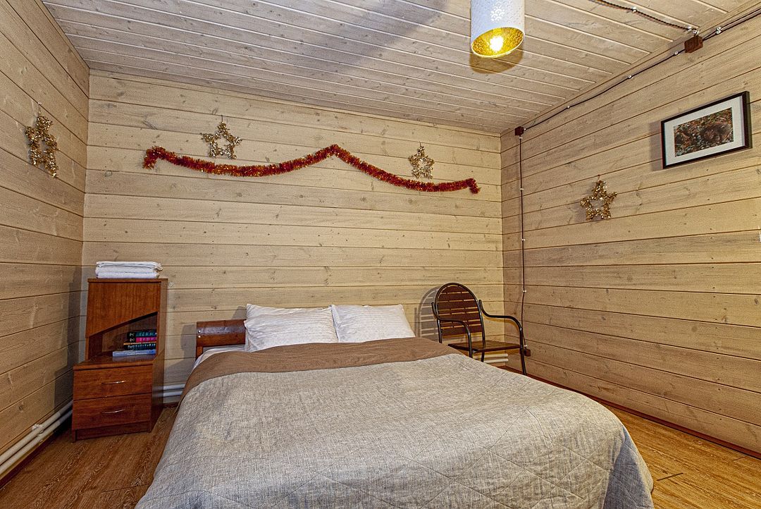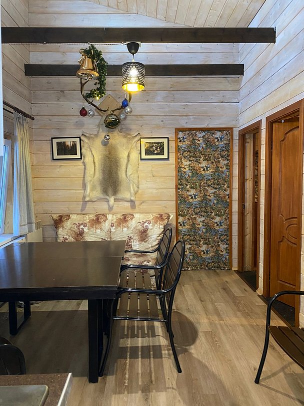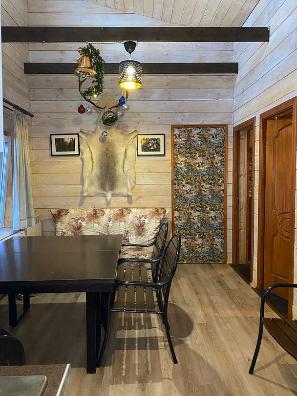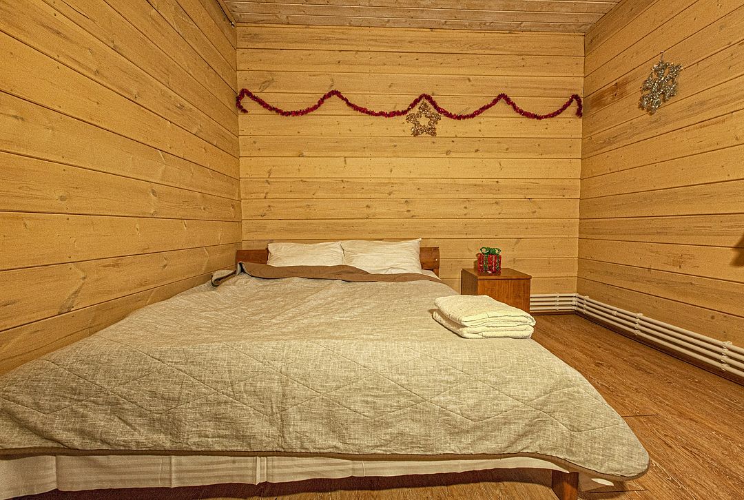 Две спальни, кухня-гостиная с диваном, с/у, баня расположена в доме, на территории есть чан, купель.
