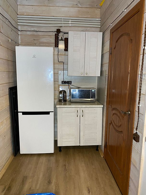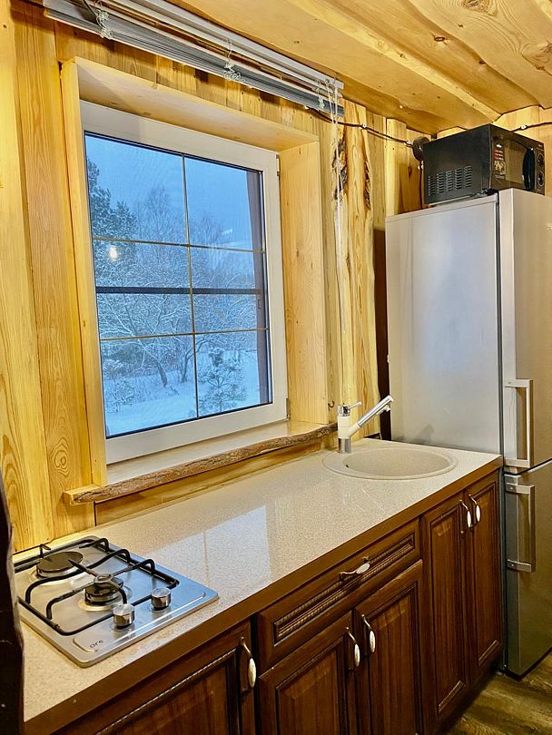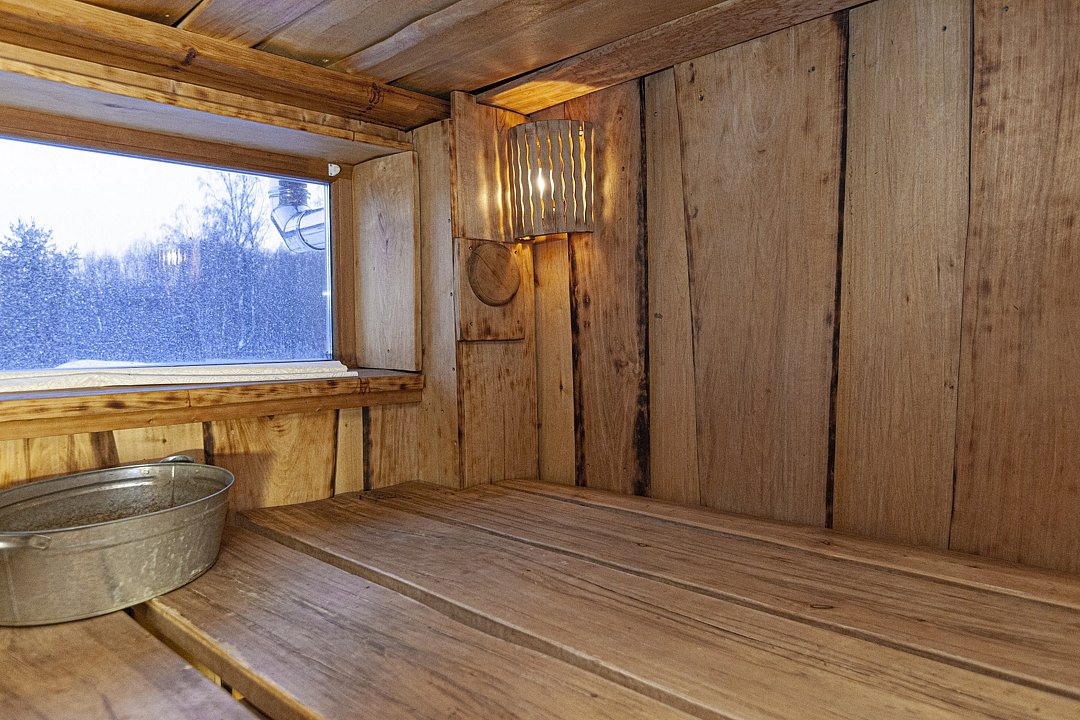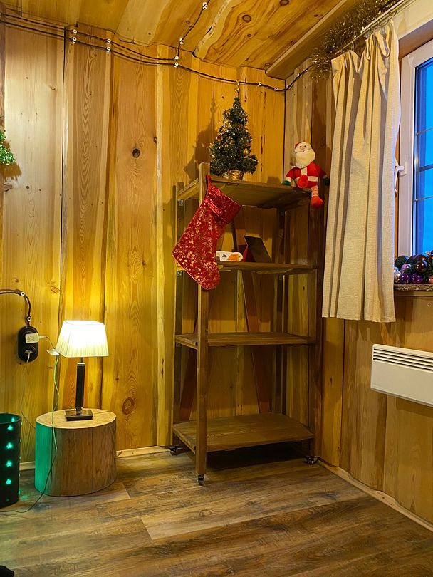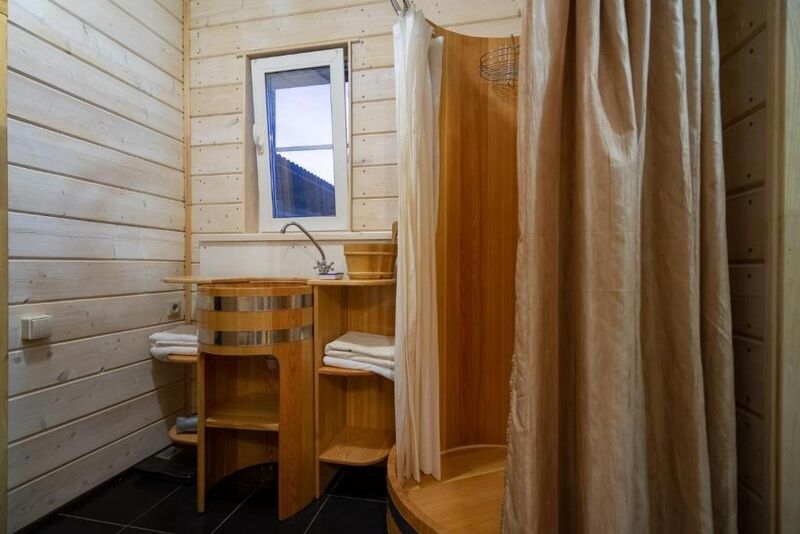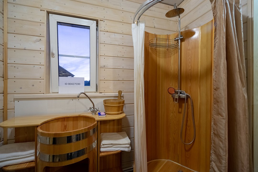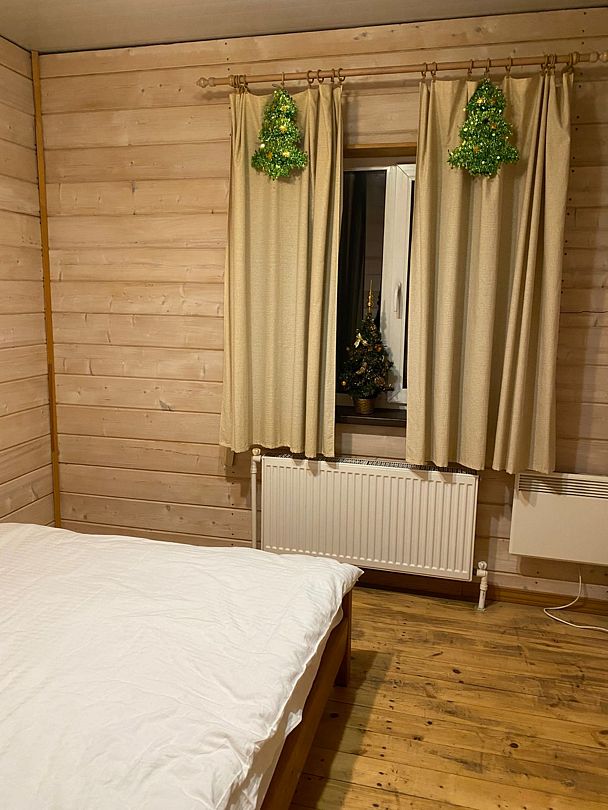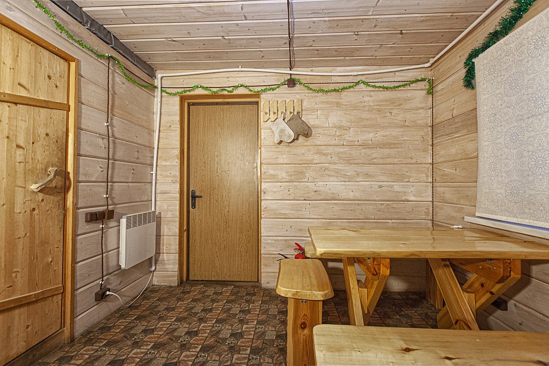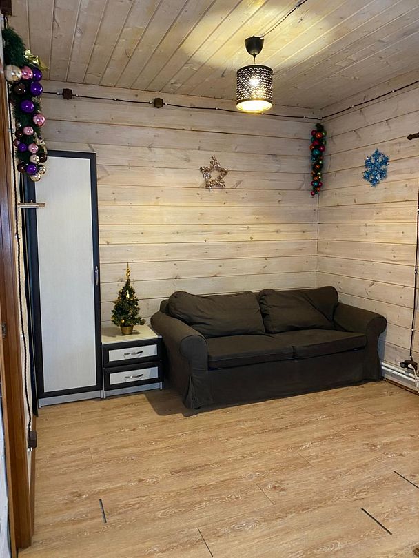 Две спальни, кухня-гостиная с диваном, с/у, баня расположена в доме, на территории есть чан, купель.