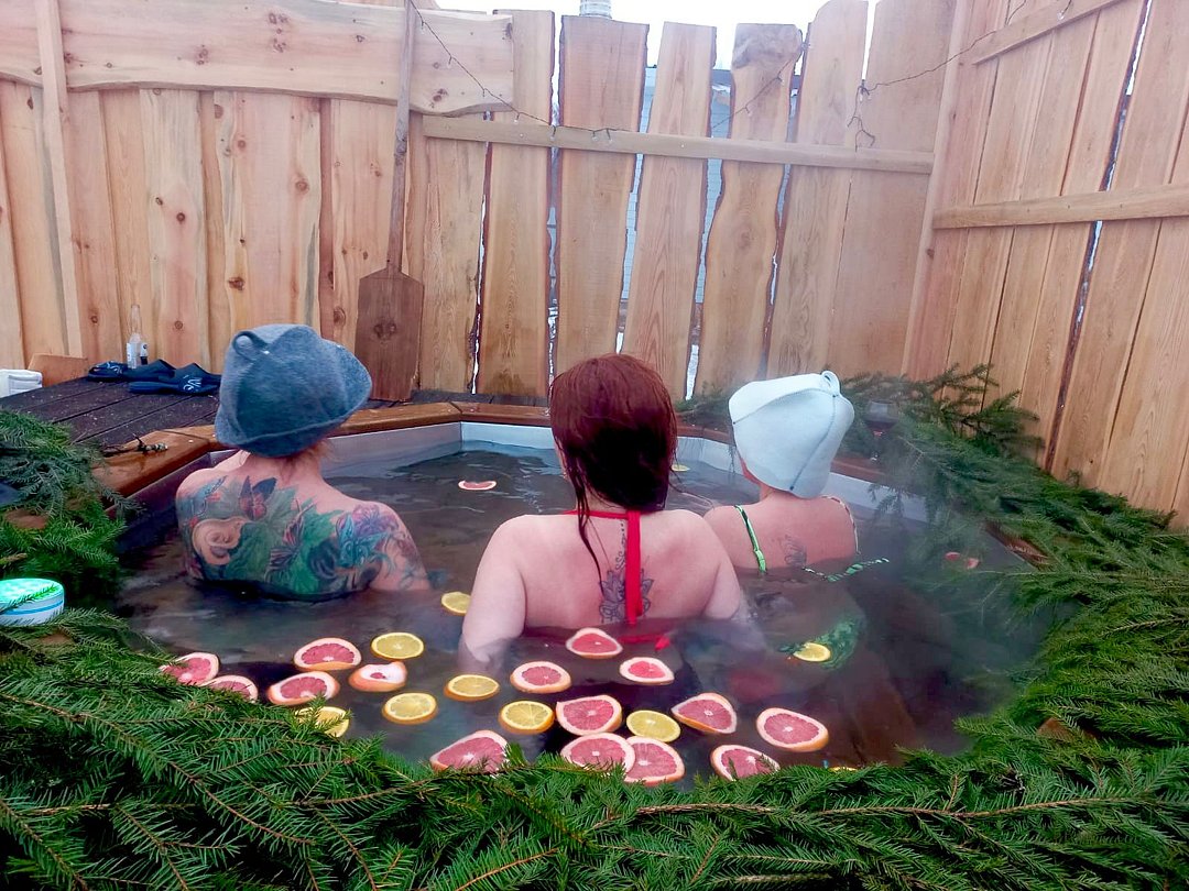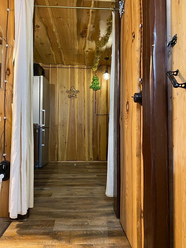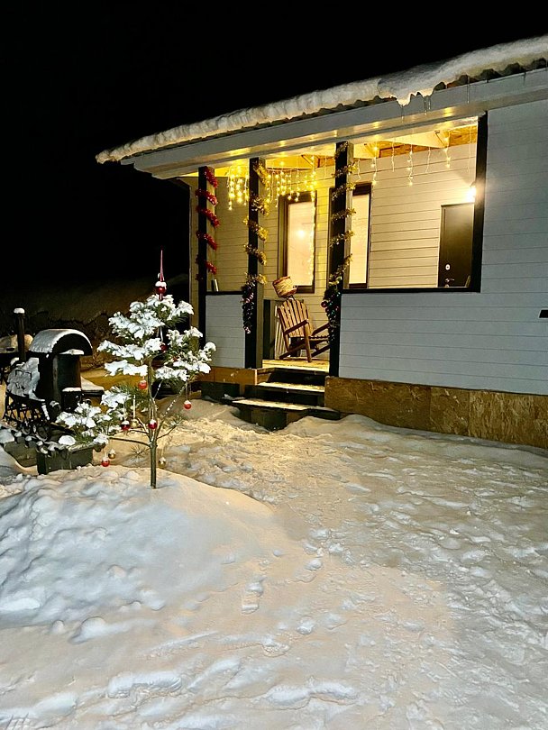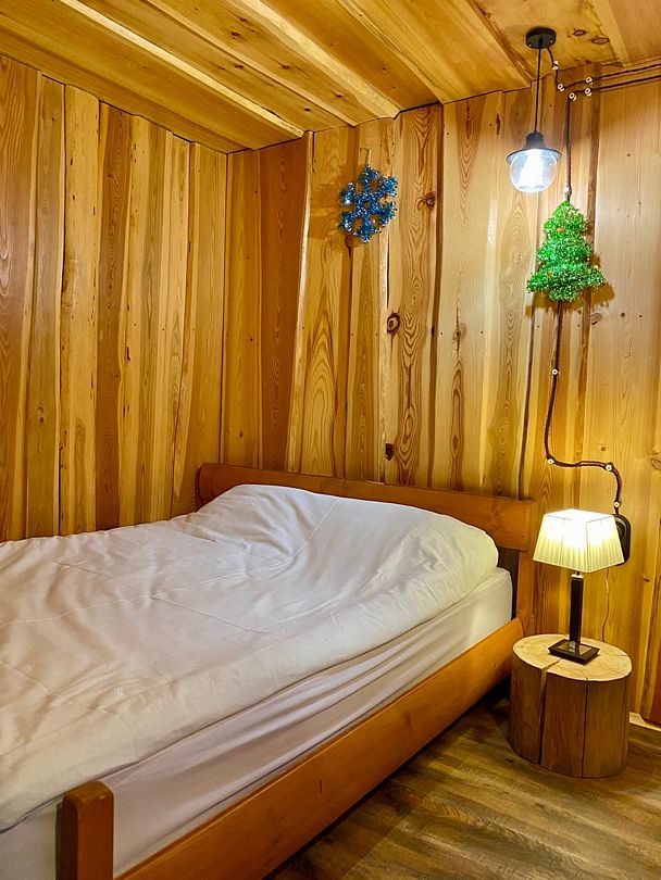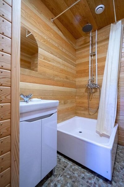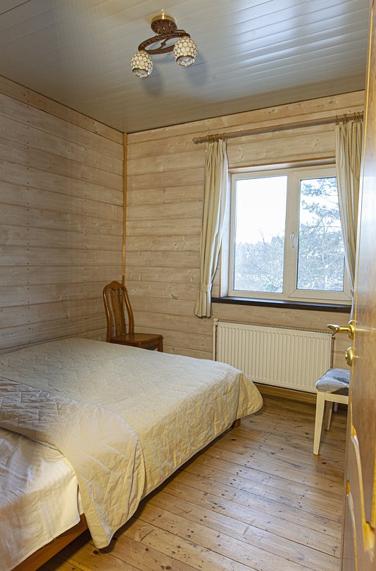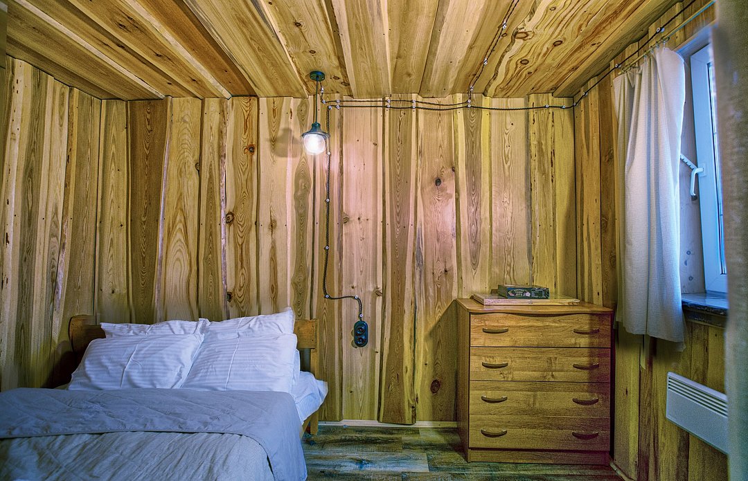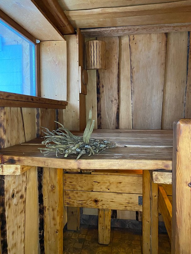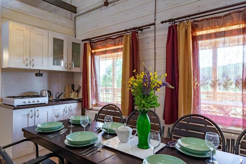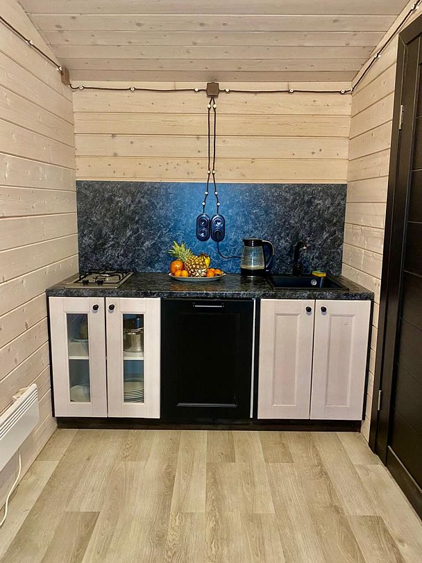 Две спальни, кухня-гостиная с диваном, с/у, баня расположена в доме, на территории есть чан, купель.