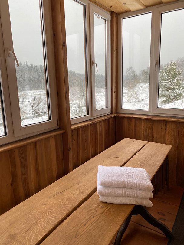 Речная Заимка – островок комфорта и тишины, в окружении дикого леса, на высоком берегу прозрачной чистой речки, которая встречает Вас, своим журчанием, круглый год, всего в 110 км от Москвы.
