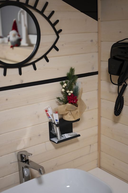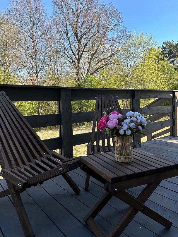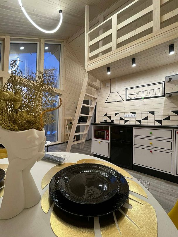 Внутри домика гостей ждет увлекательный выбор настольных игр, которые позволят весело провести время с друзьями или семьёй. После насыщенного дня можно расслабиться в традиционной японской купели Фурако, наполненной целебной морской солью. Для любителей домашних животных предусмотрено размещение с питомцами, чтобы каждый член семьи мог насладиться отдыхом.