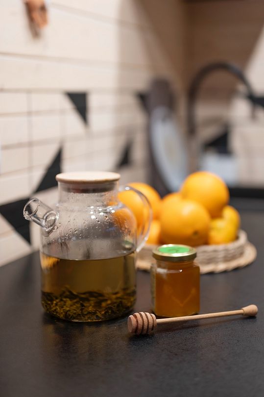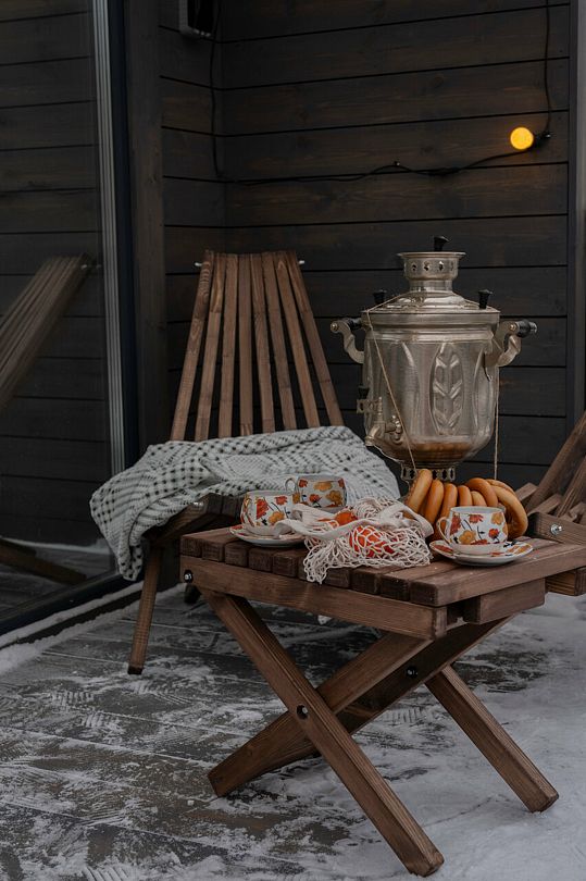 После парения можно отдохнуть на шезлонге, наслаждаясь ароматным чаем с медом.