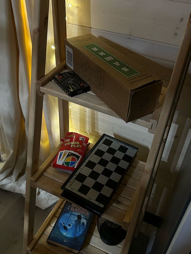 Внутри домика гостей ждет увлекательный мир настольных игр, включая Uno, шахматы и «Башню». Здесь вы сможете весело провести время с близкими и друзьями, погружаясь в атмосферу дружеского соперничества.