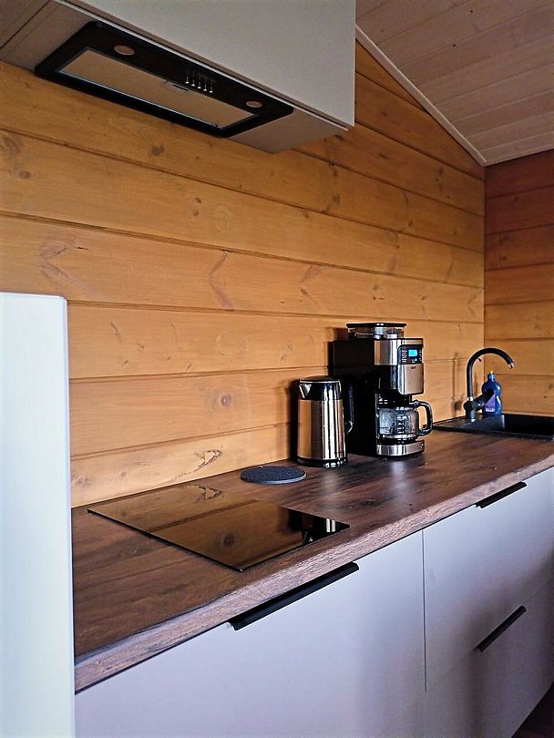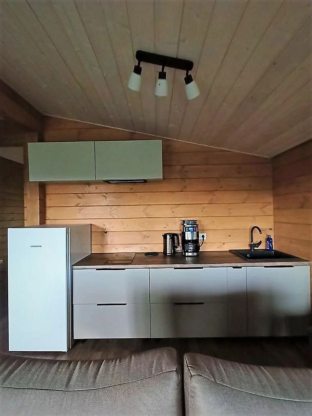 В спальне двуспальная кроватью (160х200 см) с ортопедическим матрасом. Удобная гостиная-кухня, оборудованная всем необходимым для отдыха и приготовления еды. В гостиной панорамное остекление, комфортабельный диван со спальным местом (160х200 см) и ортопедическим матрасом. У дома большая веранда с потрясающим видом.