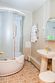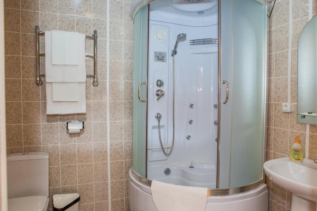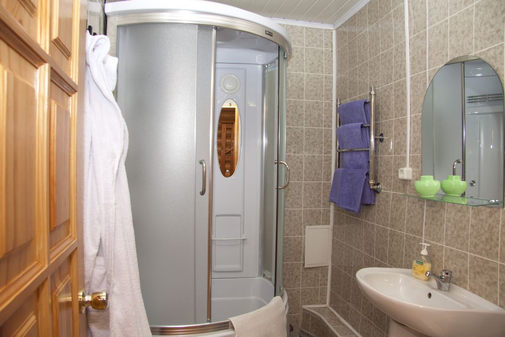 Улучшенный двухместный номер с большой двуспальной кроватью. Для удобства гостей в номере есть вся необходимая мебель, а так же некоторая бытовая техника - электрочайник, телевизор и холодильник. В ванной комнате установлена душевая кабина.