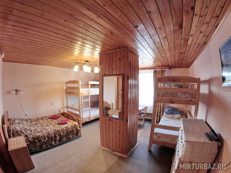 Семейный номер площадь, состоит из просторной комнаты и общей душевой комнаты с туалетом.