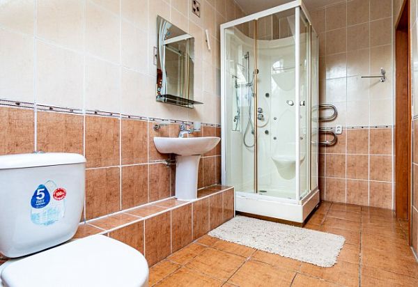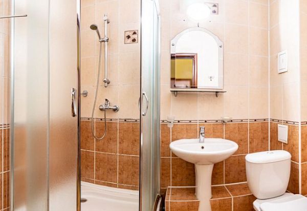 Санузел с душем, ТВ, мини-холодильник