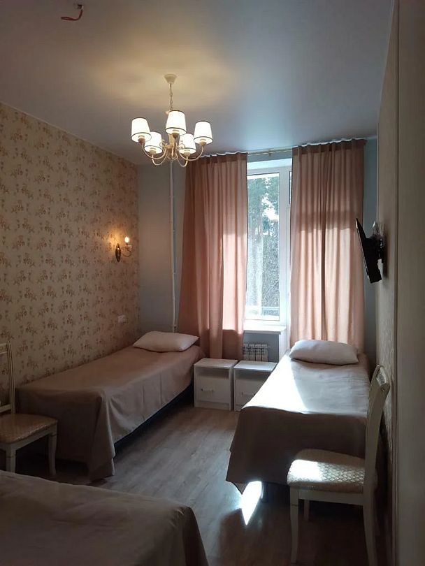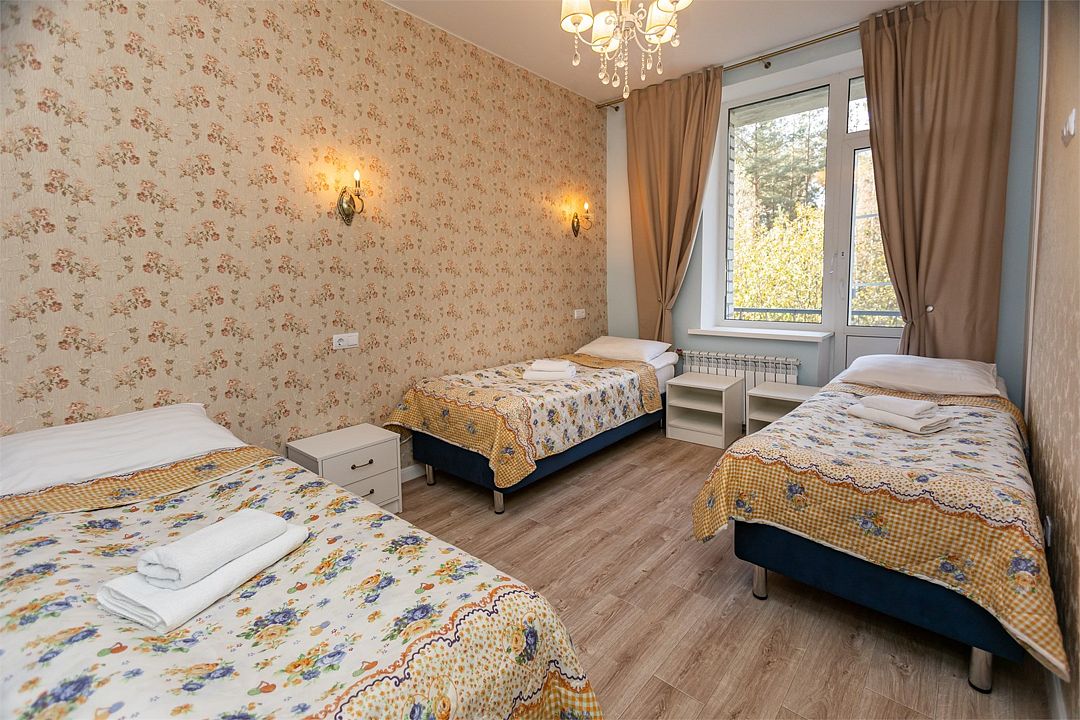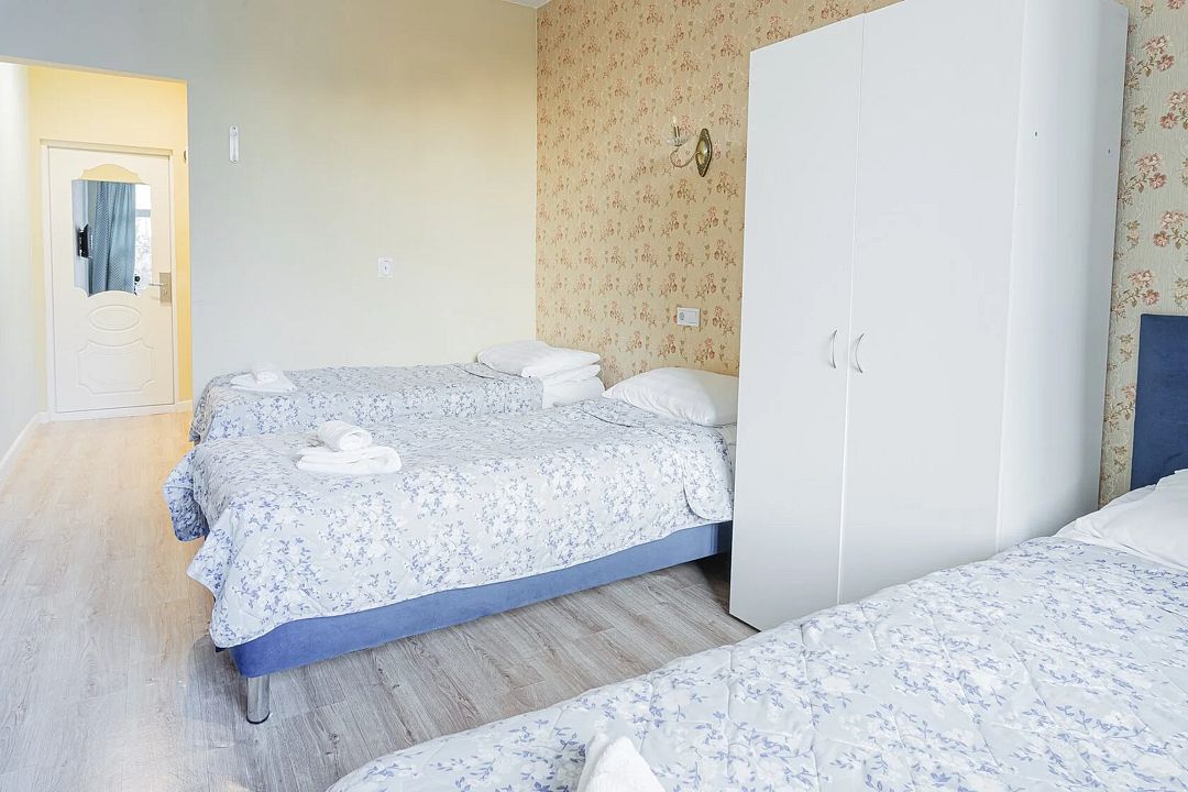 Трехместный номер по достоинству оценит компания друзей. Спальных мест хватит всем: в номере 3 односпальных кровати, оборудованные комфортными и удобными матрасами.