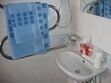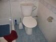душевая комната, туалет, кондиционер и телевизор.