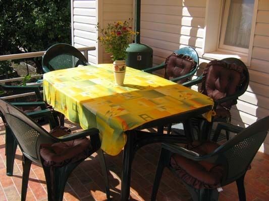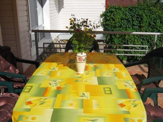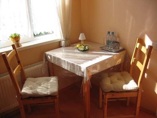 Номер оснащен удобными двухместными кроватями с ортопедическими матрасами. Есть вся необходимая и удобная мебель: стол, стулья, шкаф, прикроватные тумбочки с настольными лампами. На этаже – гостиная-столовая, где есть холодильник, микроволновая печь, тостер, чайник, вся необходимая посуда, большой стол, выход на балкон–веранду.