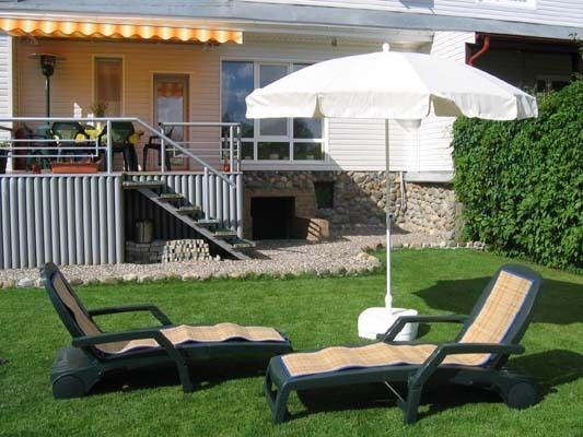 Во дворе дома любители понежиться в лучах солнца найдут для себя удобные шезлонги, а предпочитающие активно проводить время могут поиграть в бадминтон. Для любителей попариться есть сауна.
