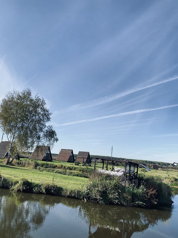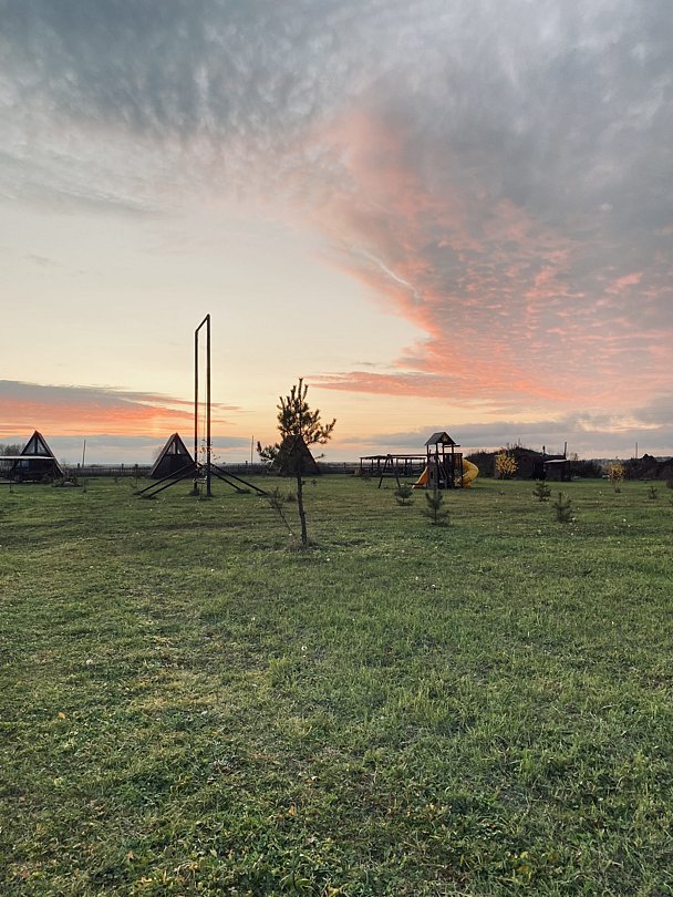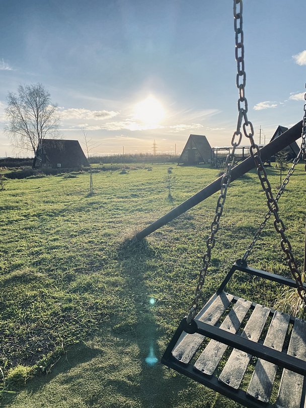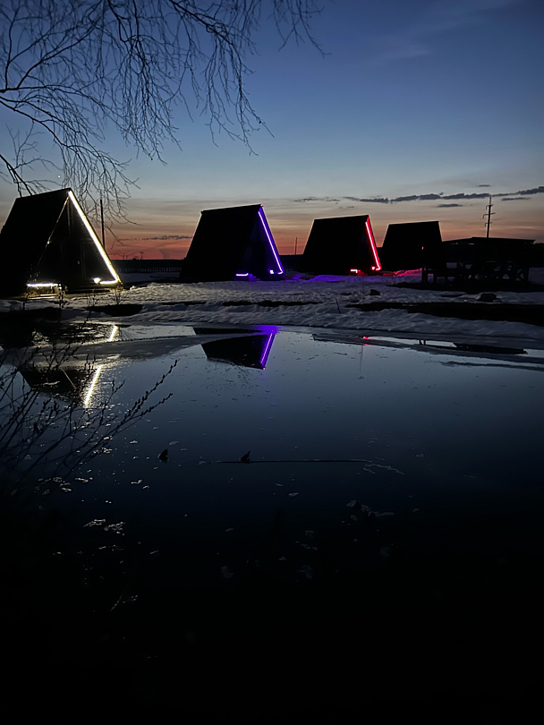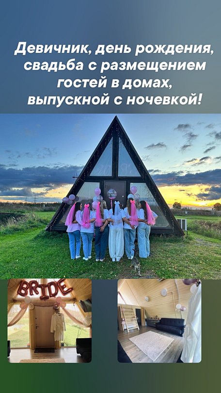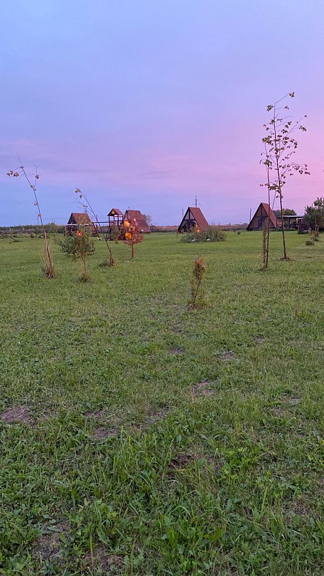 Стильные, комфортабельные домики для загородного отдыха находятся во Владимирской области, в 20 минутах пути от Мурома. На просторной, зеленой территории с двумя водоемами располагаются 5 уютных домов в стиле А-фрейм.