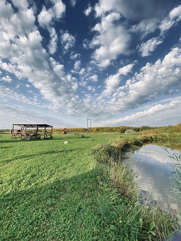 На территории гости смогут попариться в бане, взять в аренду квадроцикл или снегоход, порыбачить и искупаться в пруду, отдохнуть в беседке и приготовить блюда на мангале.