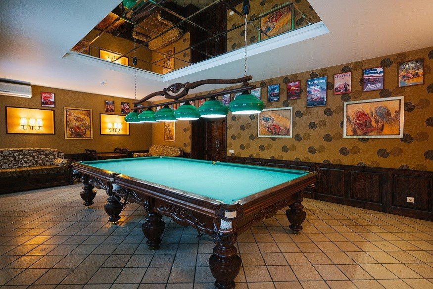 Парк-Отель «Усадьба Мещерская» предлагает своим гостям индивидуальный бильярдный зал, в котором будете только Вы, где никто не помешает Вашей игре. В зале один 12-футовый стол для Русского бильярда. Для Вашего комфорта — 2 мягких дивана, стол для напитков и еды. Гости могут заказать изысканные блюда и напитки в ресторане «Усадьба Мещерская» и наслаждаться ими, не отвлекаясь от захватывающей игры.