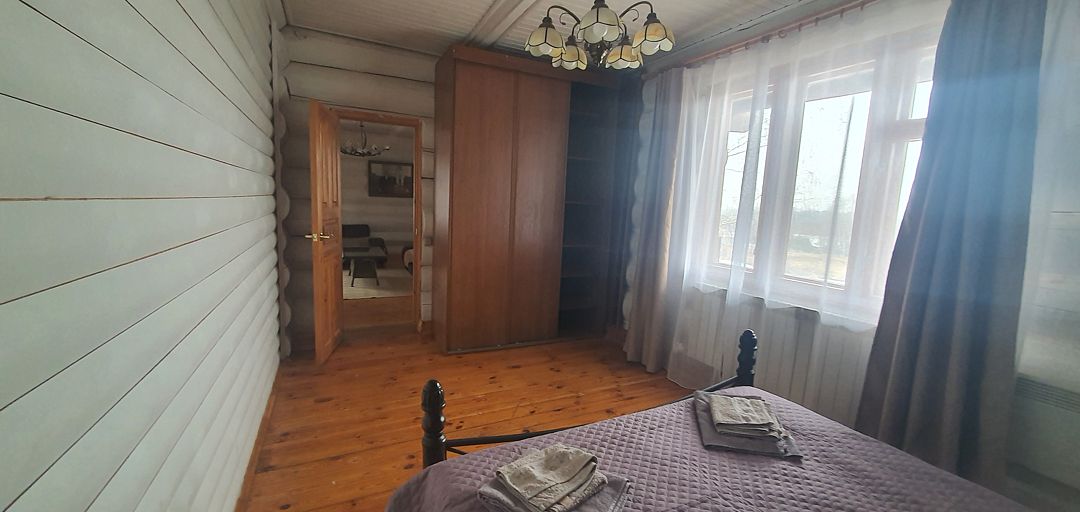 В одной зоне 3 комнаты, кухня-гостиная, душевая и туалет, большой балкон с чудесным видом на реку Клязьму и охот угодья (лес). В первой комнате 2 односпальные кровати. Во второй комнате двуспальная кровать с тумбочками и шкафом. В третьей комнате 2 односпальные кровати с тумбочкой и шкафом с выходом на балкон. Кухня-столовая с зоной отдыха и телевизором. Душевая кабинка и санузел.