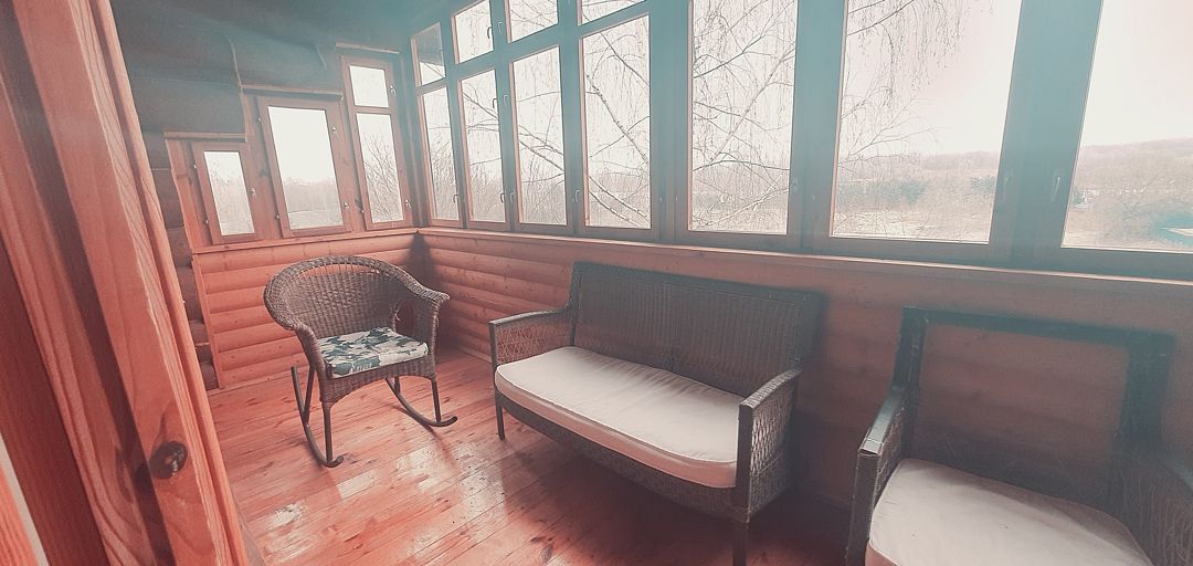 - огромная веранда с видом на р. Клязьму и пруд, стол, стулья;