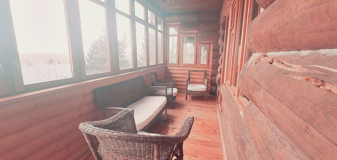 Просторная лоджия с видом на территорию базы отдыха и р. Клязьму.