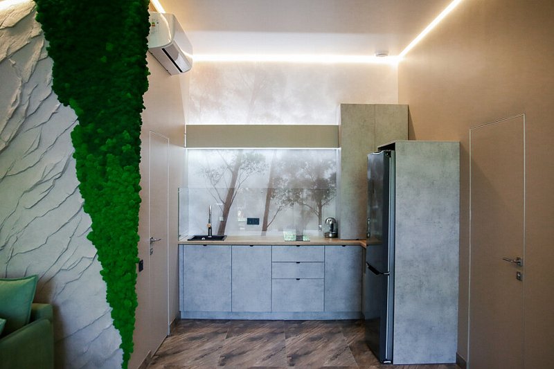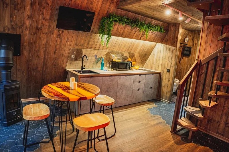 Расположенный в живописной местности, дом «Стихия Любви» предлагает комфортное проживание в окружении леса и чистого воздуха. Пространство домика продумано до мельчайших деталей: уютная спальня с большой круглой кроватью и воздушным балдахином, современная кухня с необходимой техникой и гостиная с камином, где можно уютно устроиться вечером.