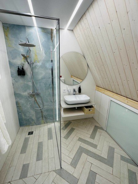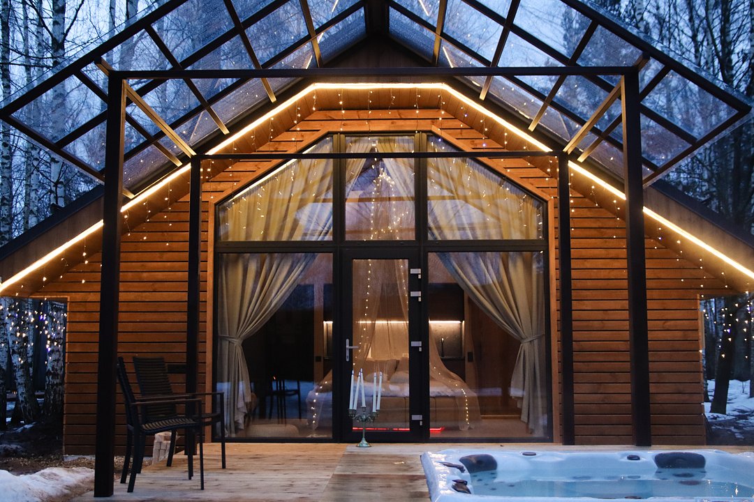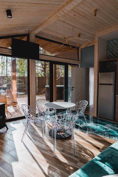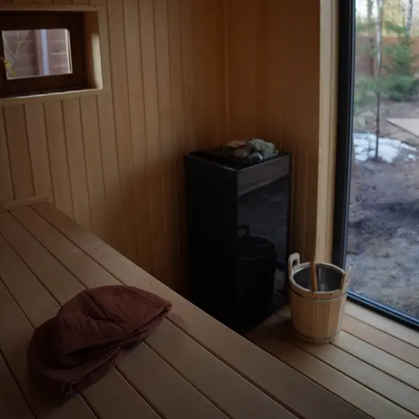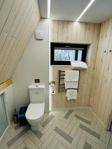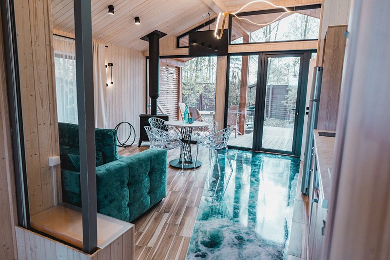 Дом с двумя спальнями и гостиной, панорамным окном и камином. Умиротворяющая атмосфера, гармония и покой. Для ценителей тишины, природы и личного пространства.