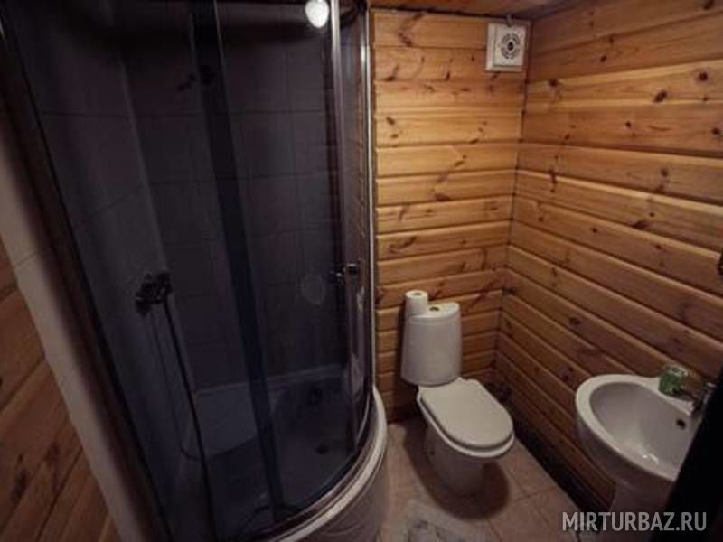 Двухэтажный дом с двумя комнатами и удобствами. Подходит для семьи с детишками или небольшой компании.