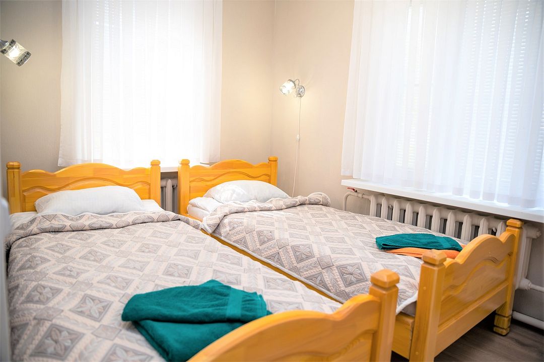 В номере просторная двуспальная кровать или две удобные раздельные кровати. Площадь номера составляет 20 кв. м, а также своя ванная комната и туалет, полностью оборудованные современными удобствами.