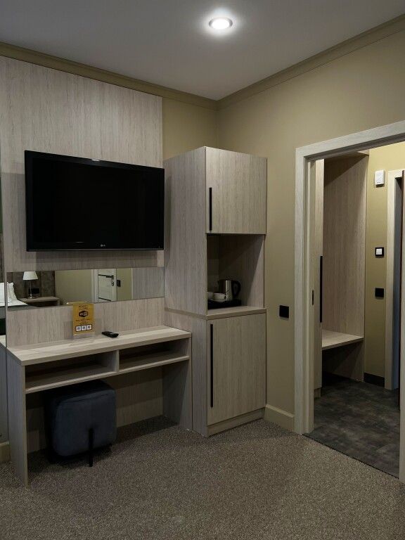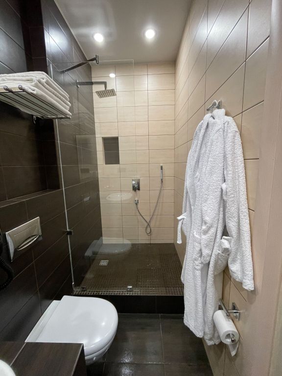 В номере вас будут ждать телевизор и халат. Оснащение зависит от выбранной категории номера.