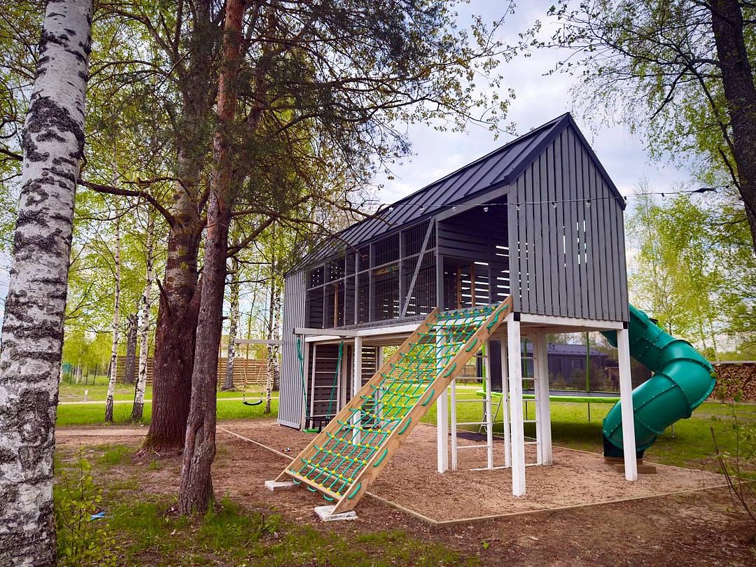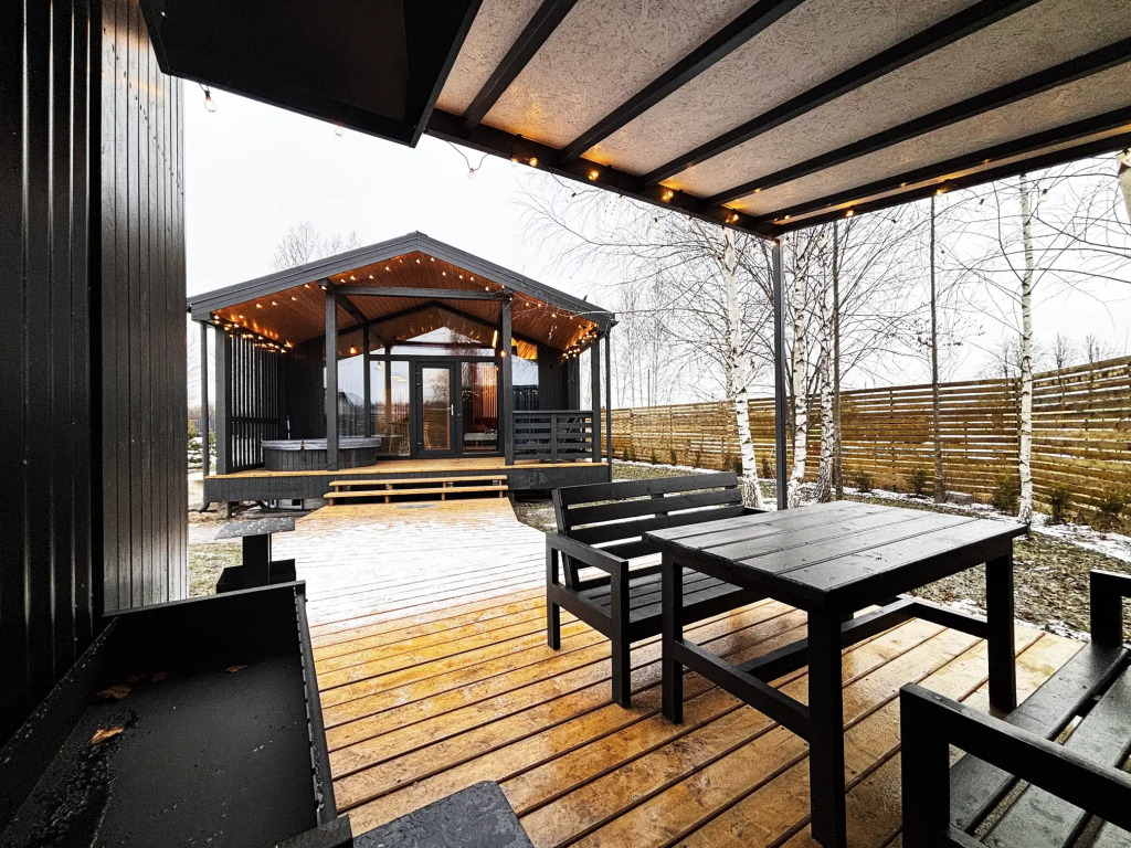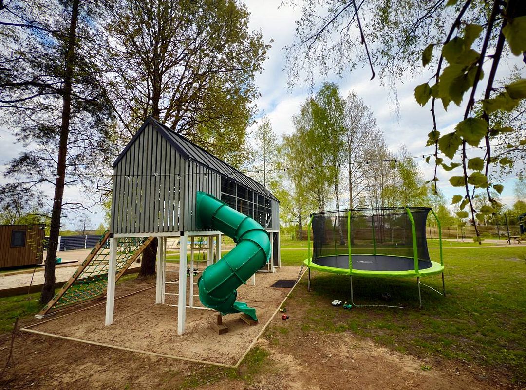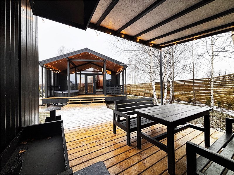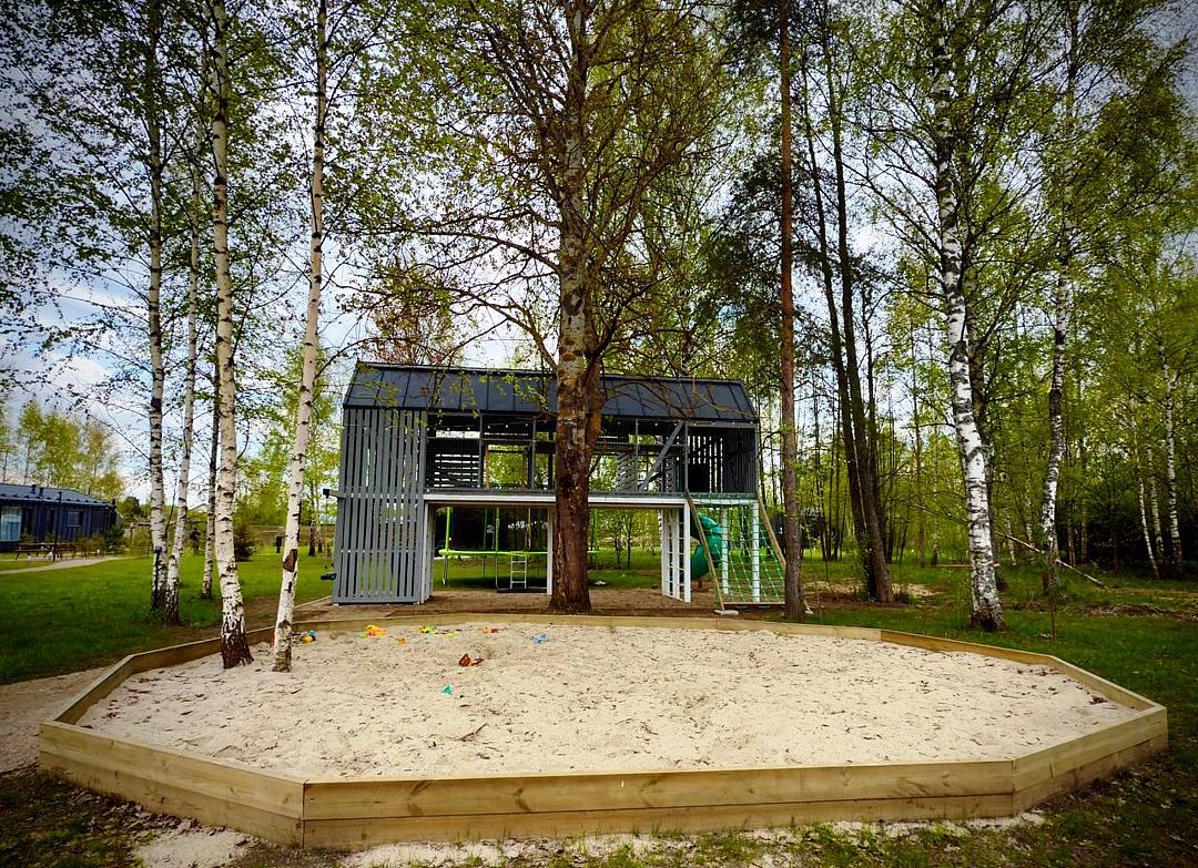 Каждый дом располагает террасой с горячей купелью и удобной мебелью, беседкой с грилем и гамаком. Для маленьких гостей предусмотрена игровая площадка, а для романтических вечеров — патио с костровой зоной.
