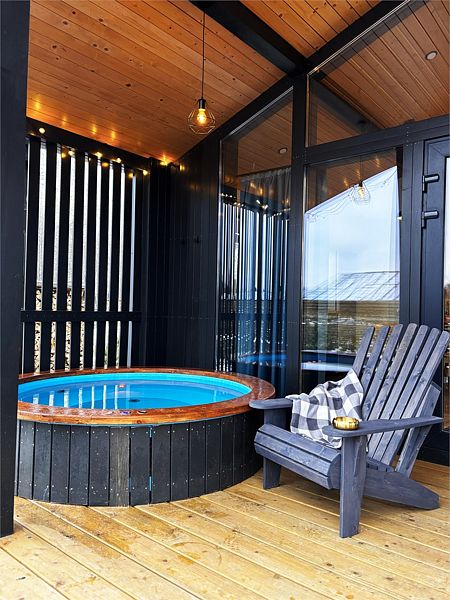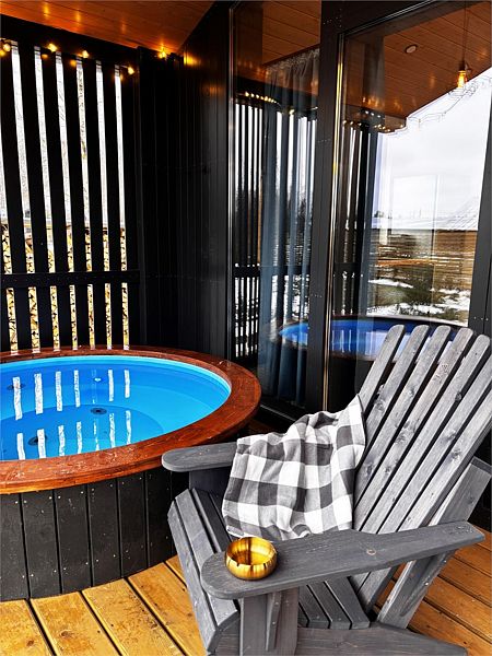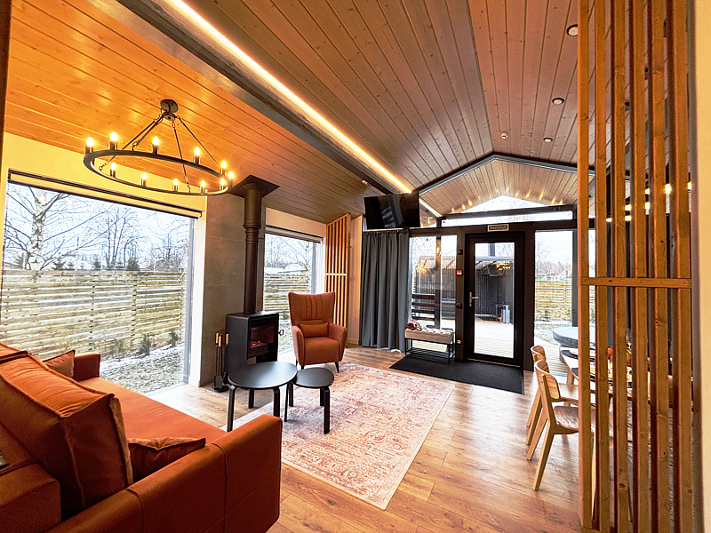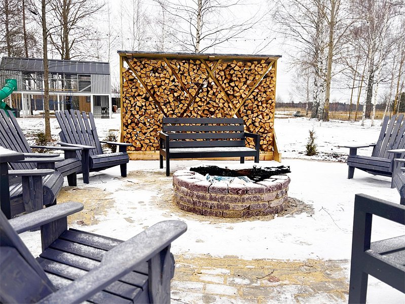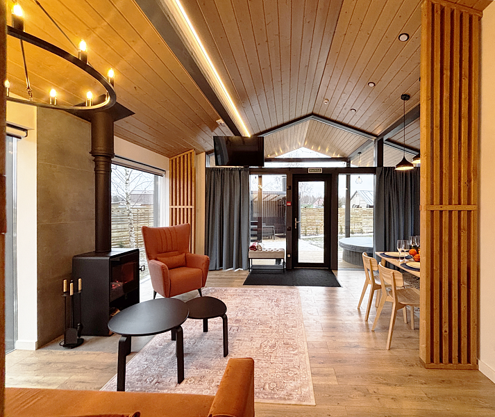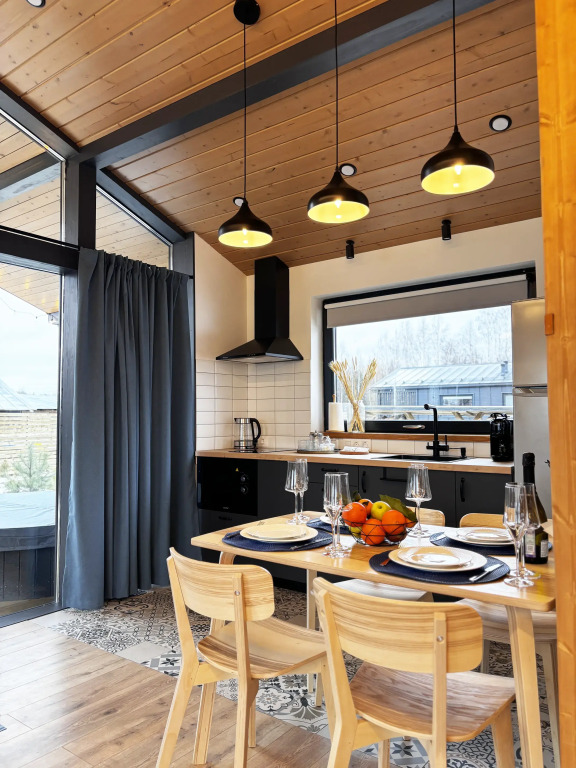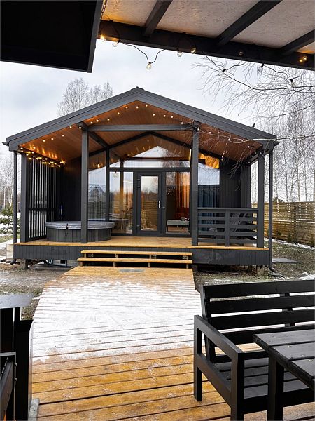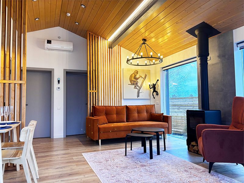 Каждый дом располагает террасой с горячей купелью и удобной мебелью, беседкой с грилем и гамаком. Для маленьких гостей предусмотрена игровая площадка, а для романтических вечеров — патио с костровой зоной.