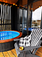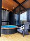 Дровяная купель фурако на веранде вашего домика создаст незабываемые впечатления. Купель оснащена подсветкой и аэромассажем.