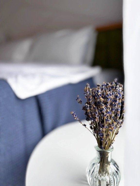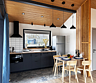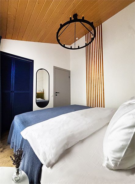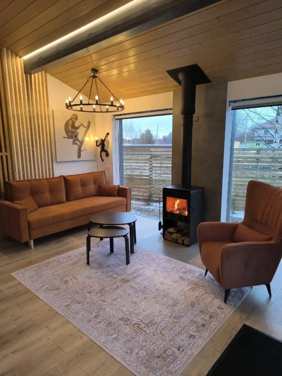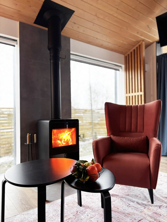 Для вас доступны две изолированные спальни с двуспальной и двумя односпальными кроватями (конфигурация кроватей трансформируется по вашему желанию), кухня-гостиная с полностью укомплектованной кухней, обеденным столом, раскладной диван с возможностью размещения двоих человек, камин, санузел с душевой кабиной и крытая терраса с встроенной дровяной купелью.