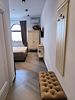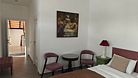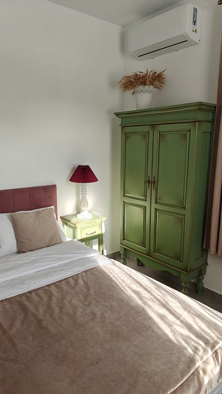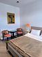 Во второй комнате есть большой диван, который раскладывается на 140х200 и на нем могут разместиться два человека. Большой журнальный столик, два удобных стула, консоль с подносом, где есть чашки для чая, графин с чистой питьевой водой и стаканы. В каждой комнате есть кондиционер и телевизор.