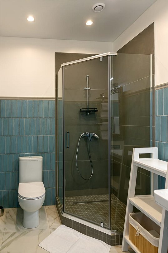 В каждой комнате есть графин с чистой питьевой водой и бесплатный чай. В просторной ванной комнате есть большая душевая кабина. Вода в кранах отфильтрованная и смягченная. Есть туалетные принадлежности, тапочки, шампунь, гель, мыло, фен.