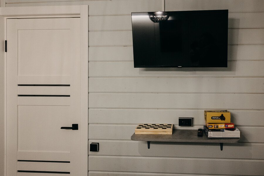 В домике есть кондиционер, wi-fi, телевизор, настольные игры.