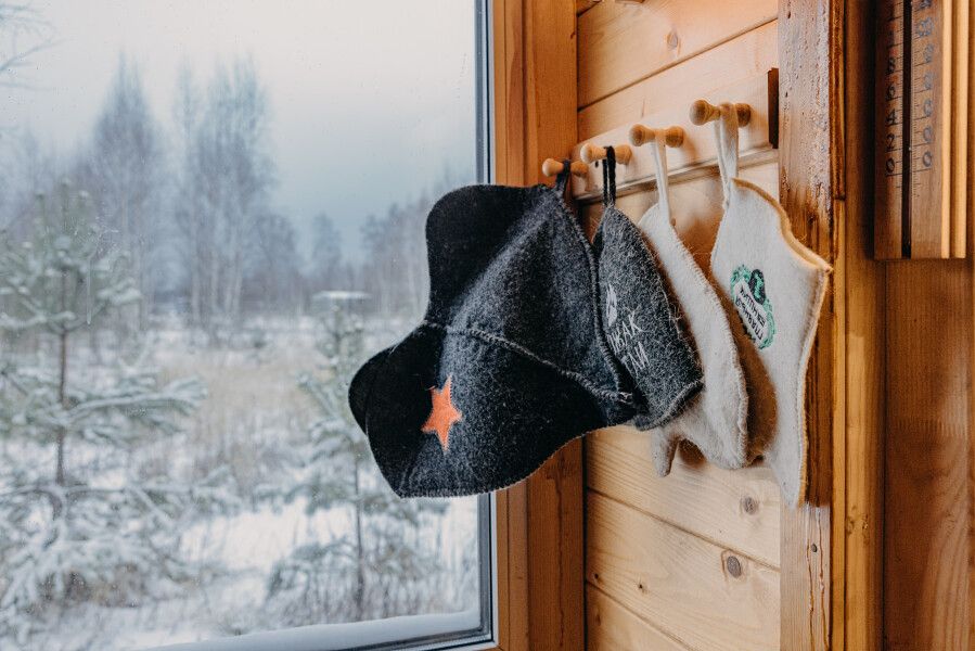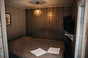 В зоне отдыха — стол на 4 гостя, радио, на веранде - 2 кресла. В бане имеется душ, раковина, ведро для обливания ледяной водой. В парной — панно из можжевельника, аромамасла, ковши для подачи жара, песочные часы и термометр, вешалки, подголовник.