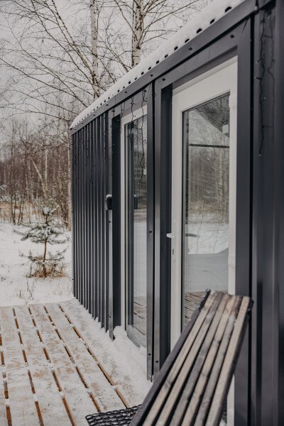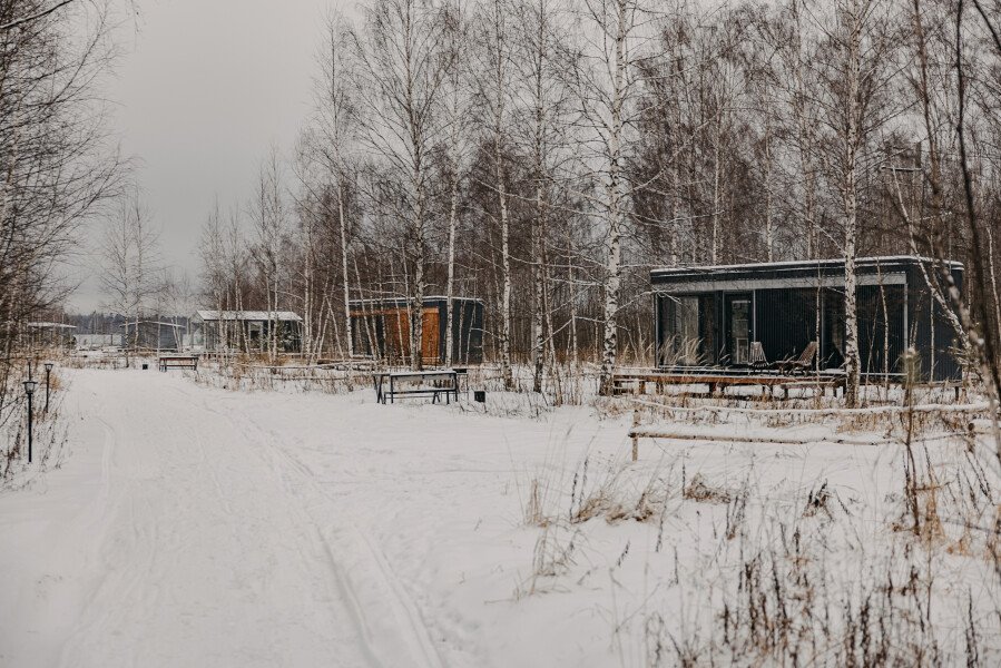 Романтичный тёплый домик-юнит на дикой природе для двоих. Данный домик находится в лесу дальше всех.