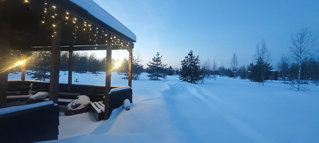 Вечером Вас ожидает атмосферная подсветка домиков и дорожек, тишина и чистое звездное небо, свободное от смога и пыли.